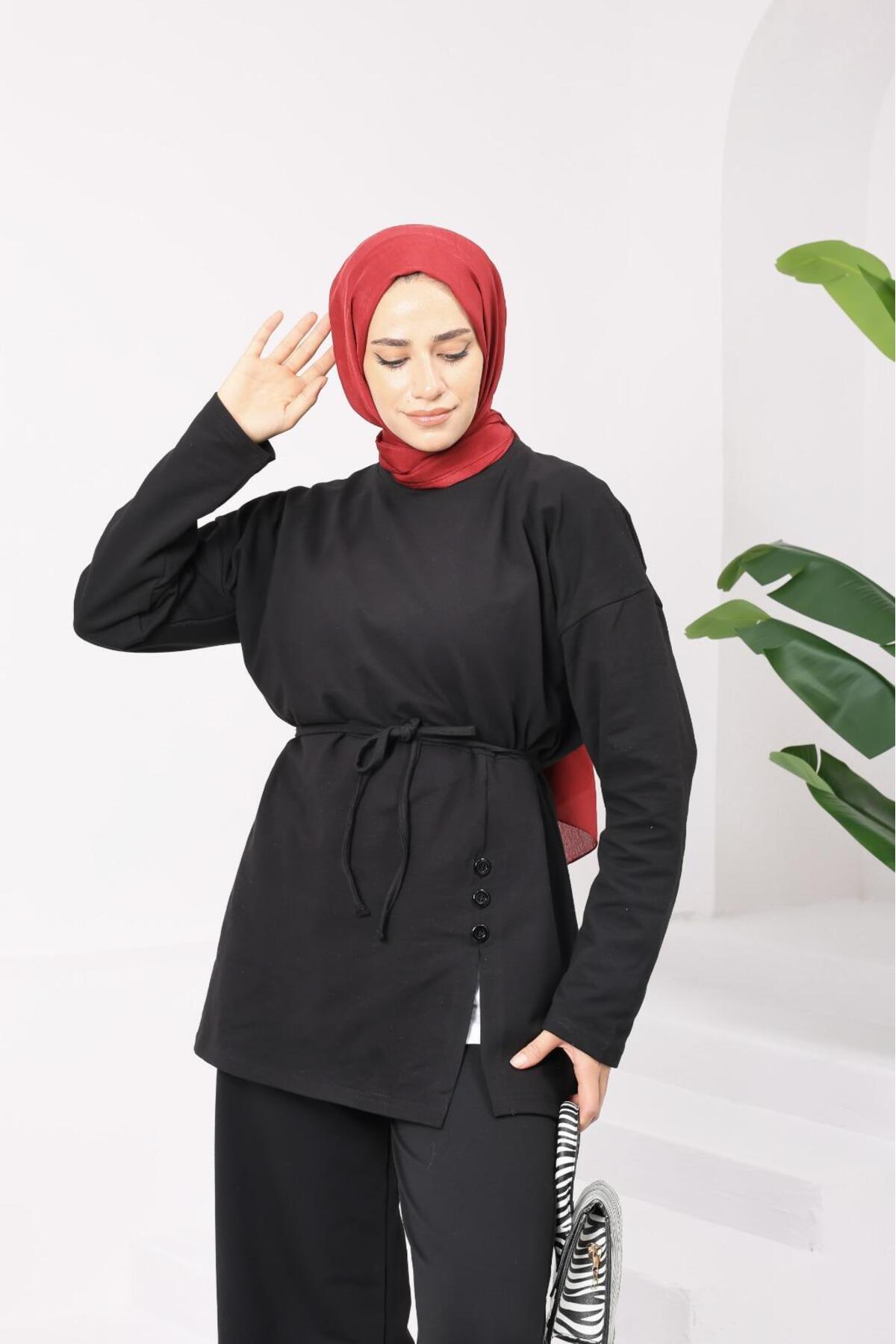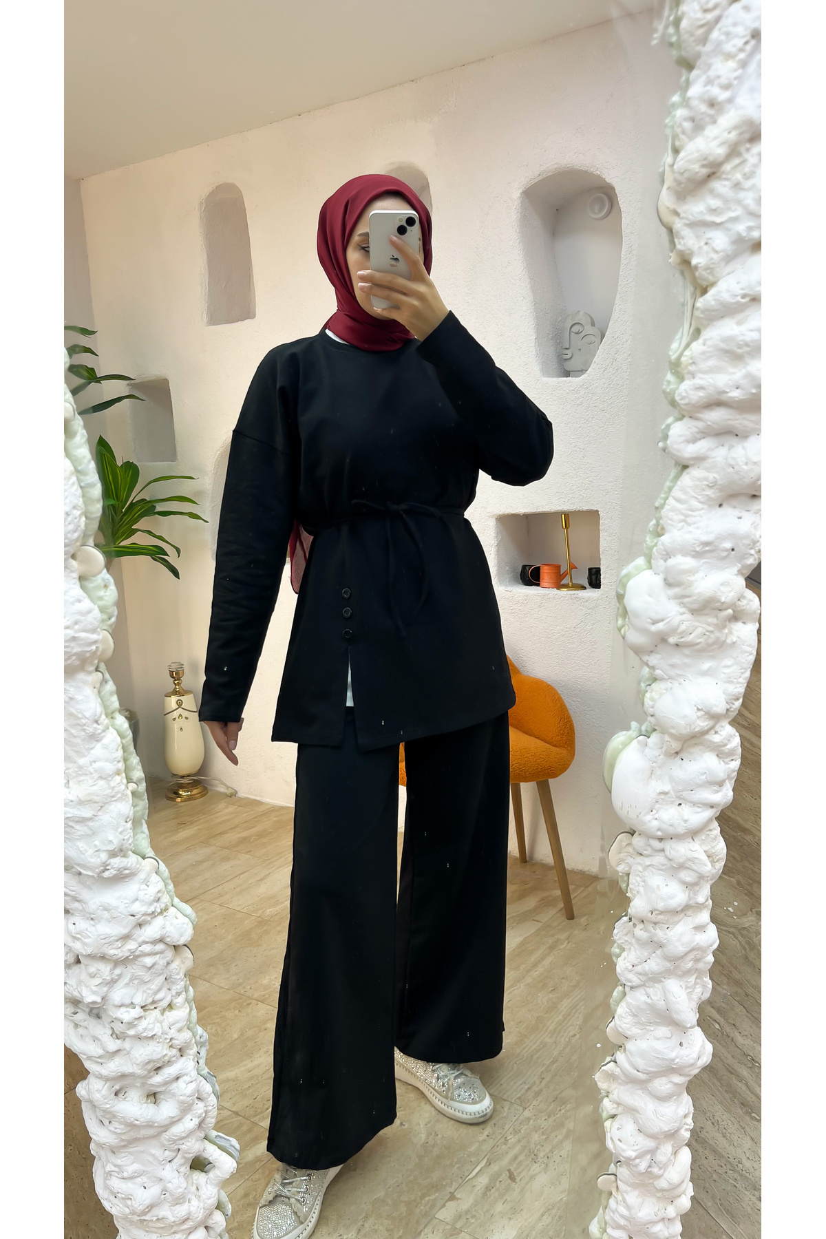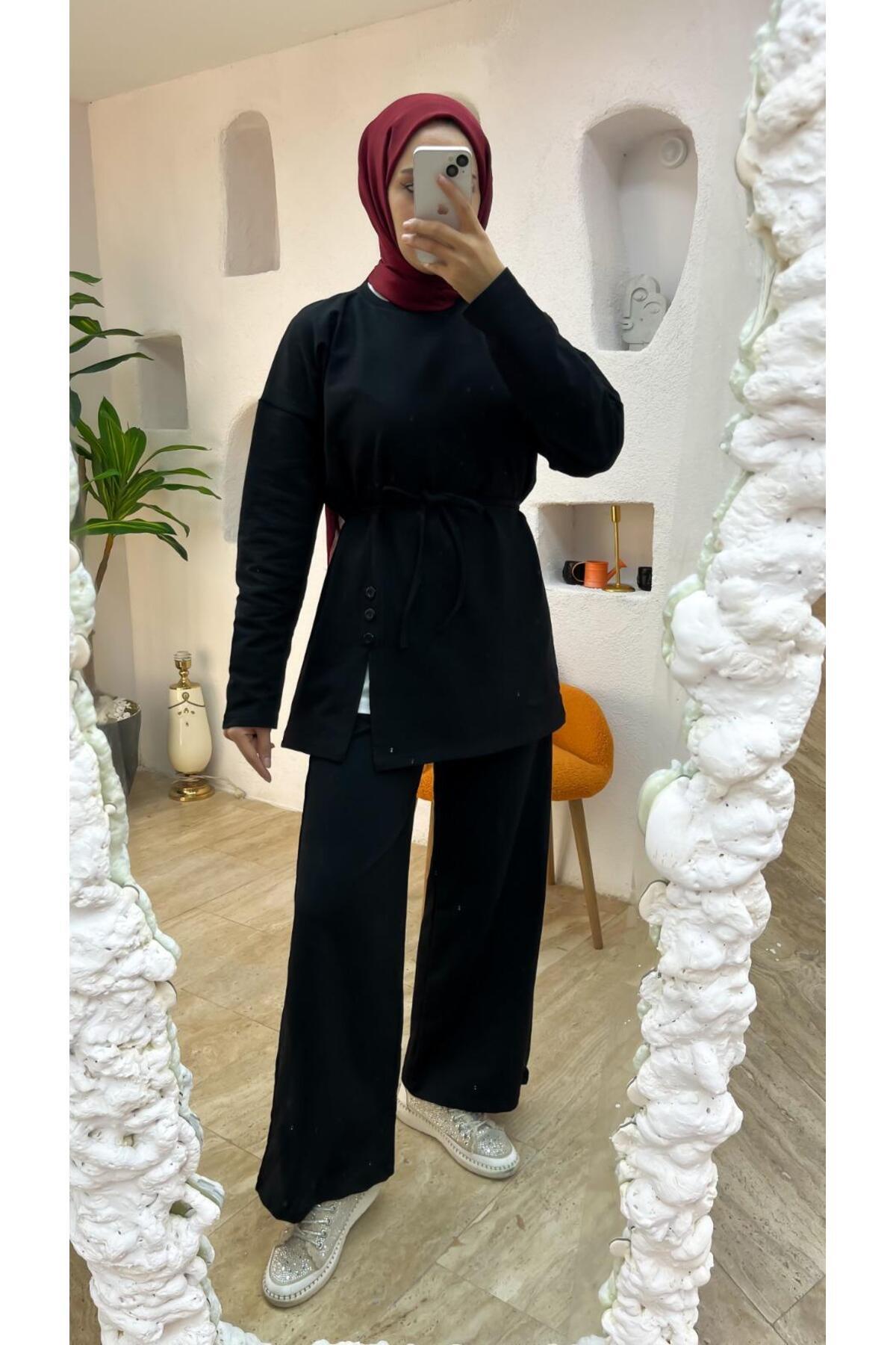 Kadın Siyah Alt Üst Takım ♦ Beli Bağlamalı ♦ Düğme Yırtmaç Detay ♦ 2 İplik Örme Kumaş ♦ Rahat Kalıp Kadın Siyah Alt Üst Takım ♦ Beli Bağlamalı ♦ Düğme Yırtmaç Detay ♦ 2 İplik Örme Kumaş ♦ Rahat Kalıp yeni-10 XL