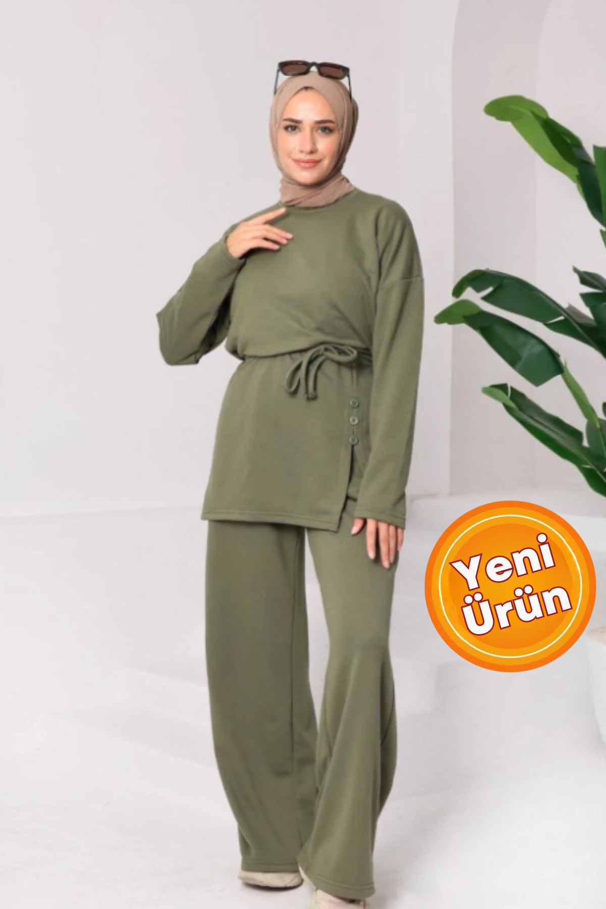 Kadın Haki Alt Üst Takım ♦ Beli Bağlamalı ♦ Düğme Yırtmaç Detay ♦ 2 İplik Örme Kumaş ♦ Rahat Kalıp Kadın Haki Alt Üst Takım ♦ Beli Bağlamalı ♦ Düğme Yırtmaç Detay ♦ 2 İplik Örme Kumaş ♦ Rahat Kalıp yeni-10 XL