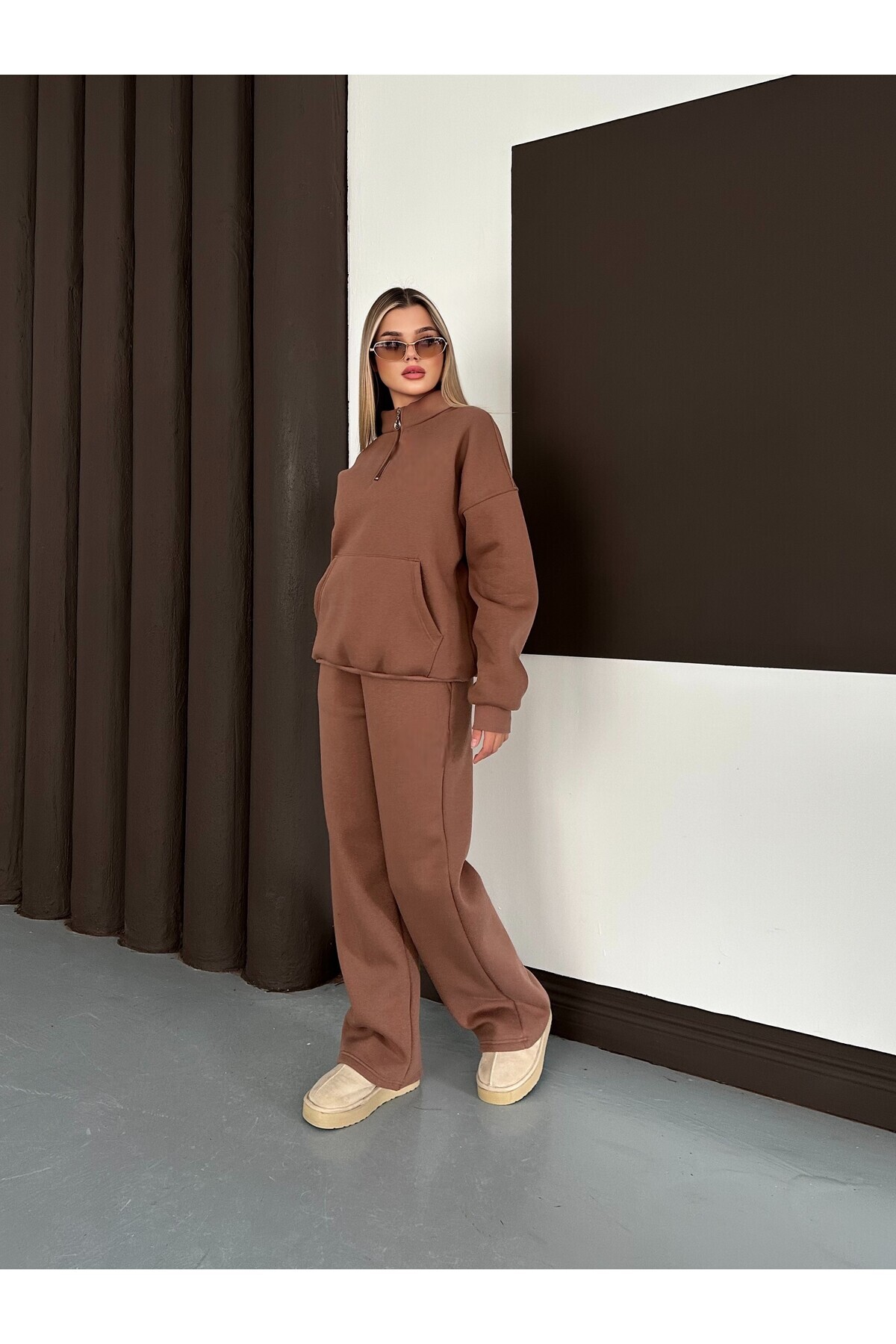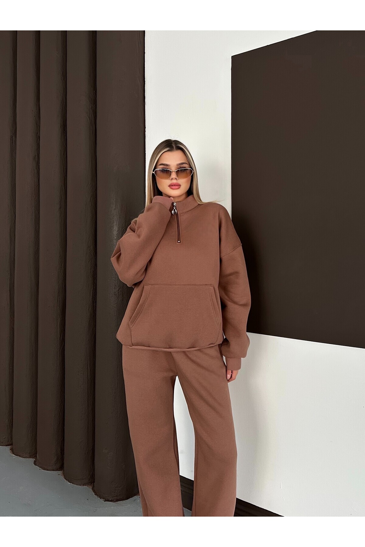 Kadın Oversize Kanguru Cep Polar Yarım Fermuarlı Pantolon Takım Kadın Oversize Kanguru Cep Polar Yarım Fermuarlı Pantolon Takım OTK-polartkm XL
