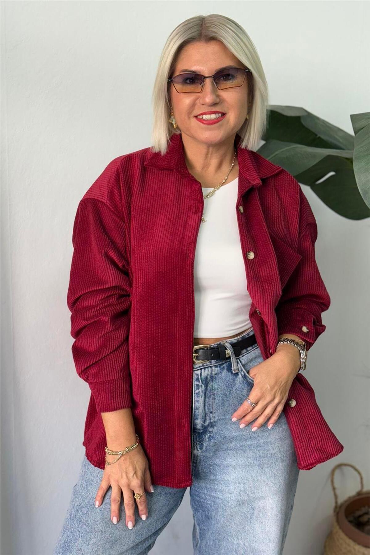 Bordo İnce Fitilli Düz Basic Kadife Gömlek Bordo İnce Fitilli Düz Basic Kadife Gömlek UG02412137 Standart