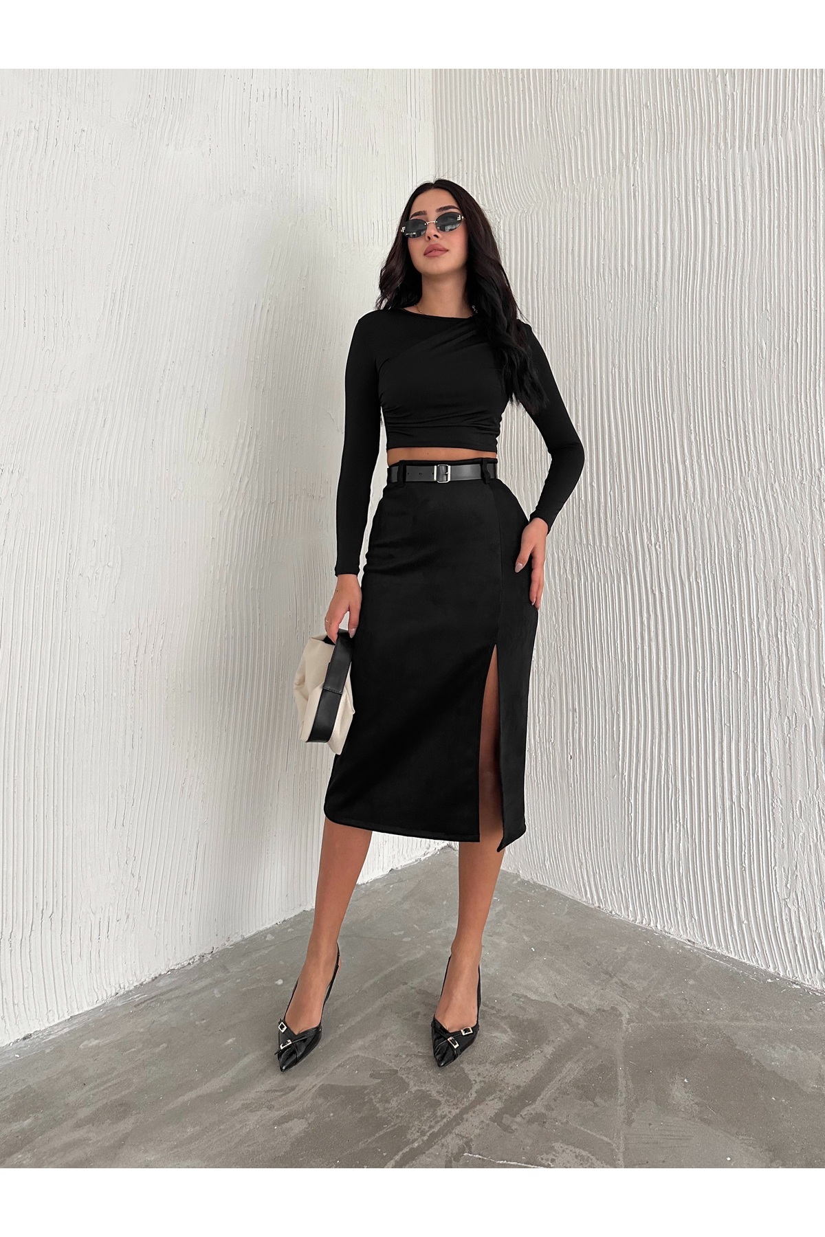 Kemerli Yırtmaçlı Süet etek Kemerli Yırtmaçlı Süet etek MSP2422 XL