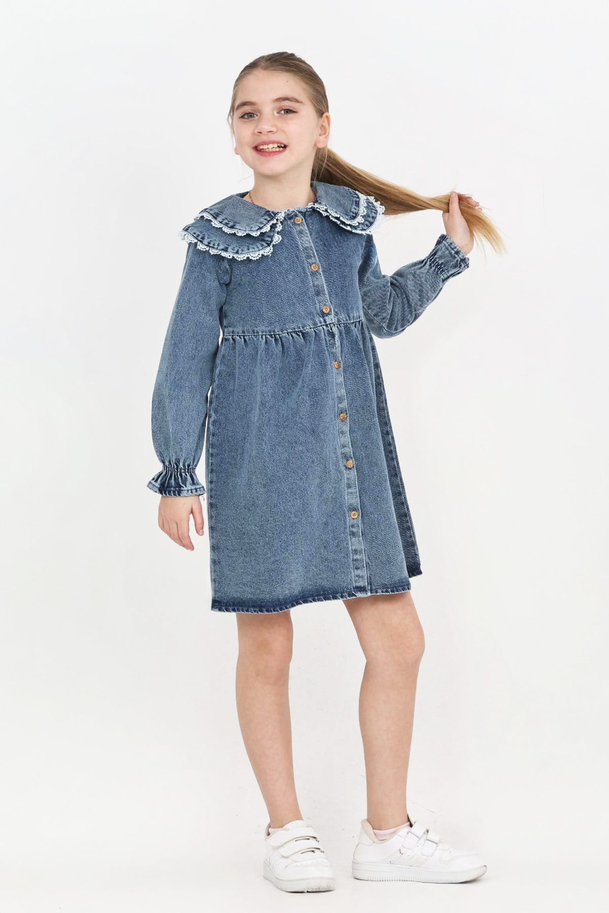 Kız Çocuk Yaka Detaylı ve Boydan Düğmeli Jean Elbise 12339 Kız Çocuk Yaka Detaylı ve Boydan Düğmeli Jean Elbise 12339 KEMN012339 11-12 Yaş
