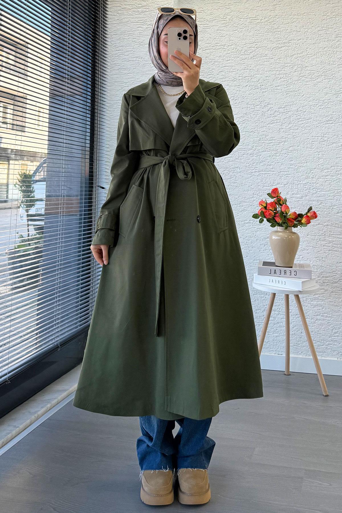 Premium Dört Düğmeli Oversize Kadın Trençkot - Haki Premium Dört Düğmeli Oversize Kadın Trençkot - Haki mlk15670 42