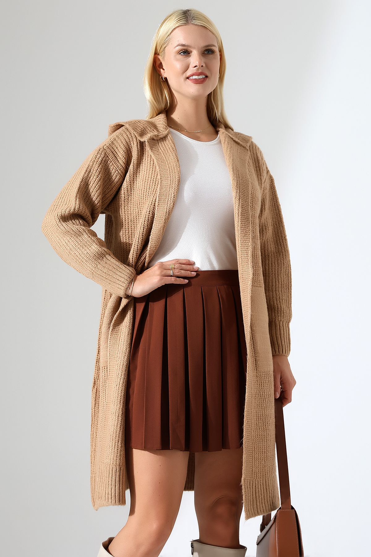 Kadın Kapşonlu Oversize Salaş Uzun Cepli Triko Hırka DVKA-0699 Kadın Kapşonlu Oversize Salaş Uzun Cepli Triko Hırka DVKA-0699 Standart