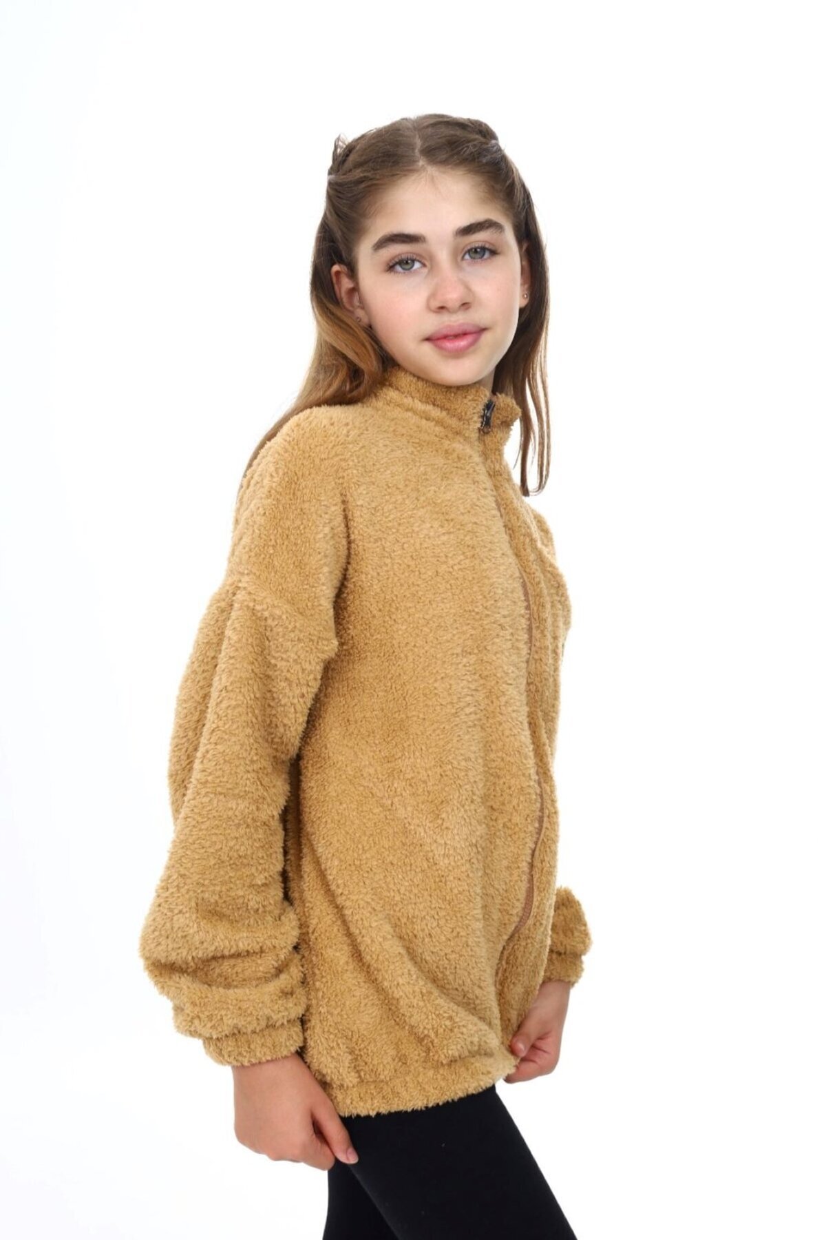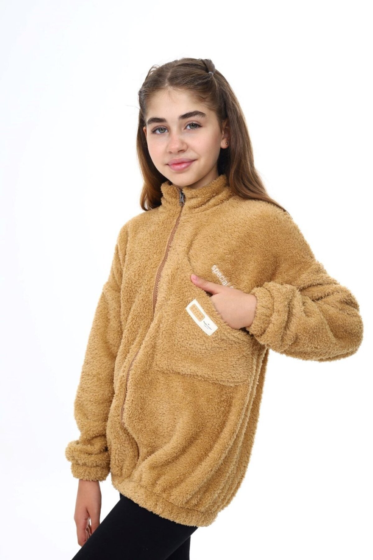 Kahverengi Kız Çocuk Dik Yaka Fermuarlı Cepli Düşük Omuz Nakış Baskılı Peluş Hırka Kahverengi Kız Çocuk Dik Yaka Fermuarlı Cepli Düşük Omuz Nakış Baskılı Peluş Hırka TKAW25HR24251 13-14 Yaş