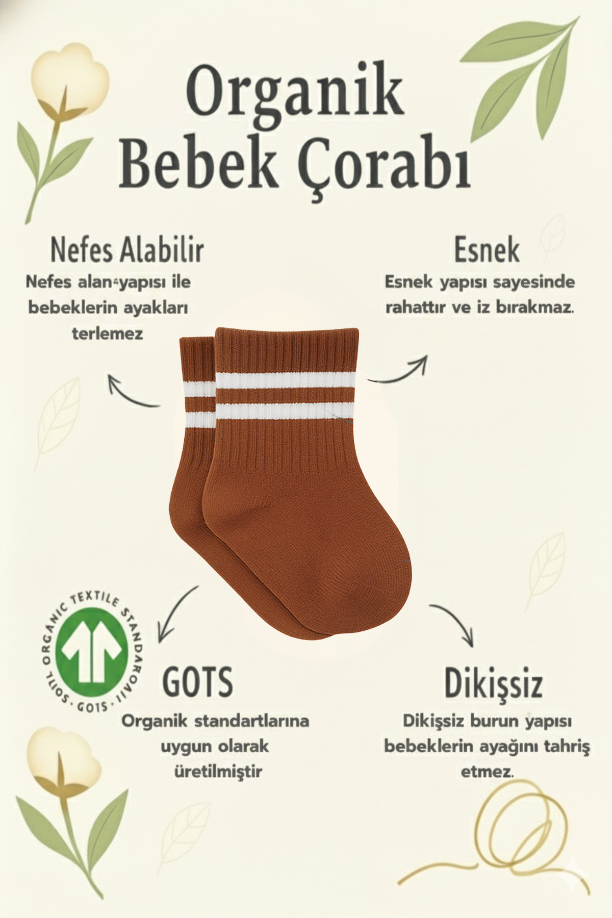 6 Çift Organik Pamuk Bebek Çorap Çemberli Dikişsiz Penye Soket Kız Erkek Çocuk (Kahve) 6 Çift Organik Pamuk Bebek Çorap Çemberli Dikişsiz Penye Soket Kız Erkek Çocuk (Kahve) BS0010102 24-36 Ay