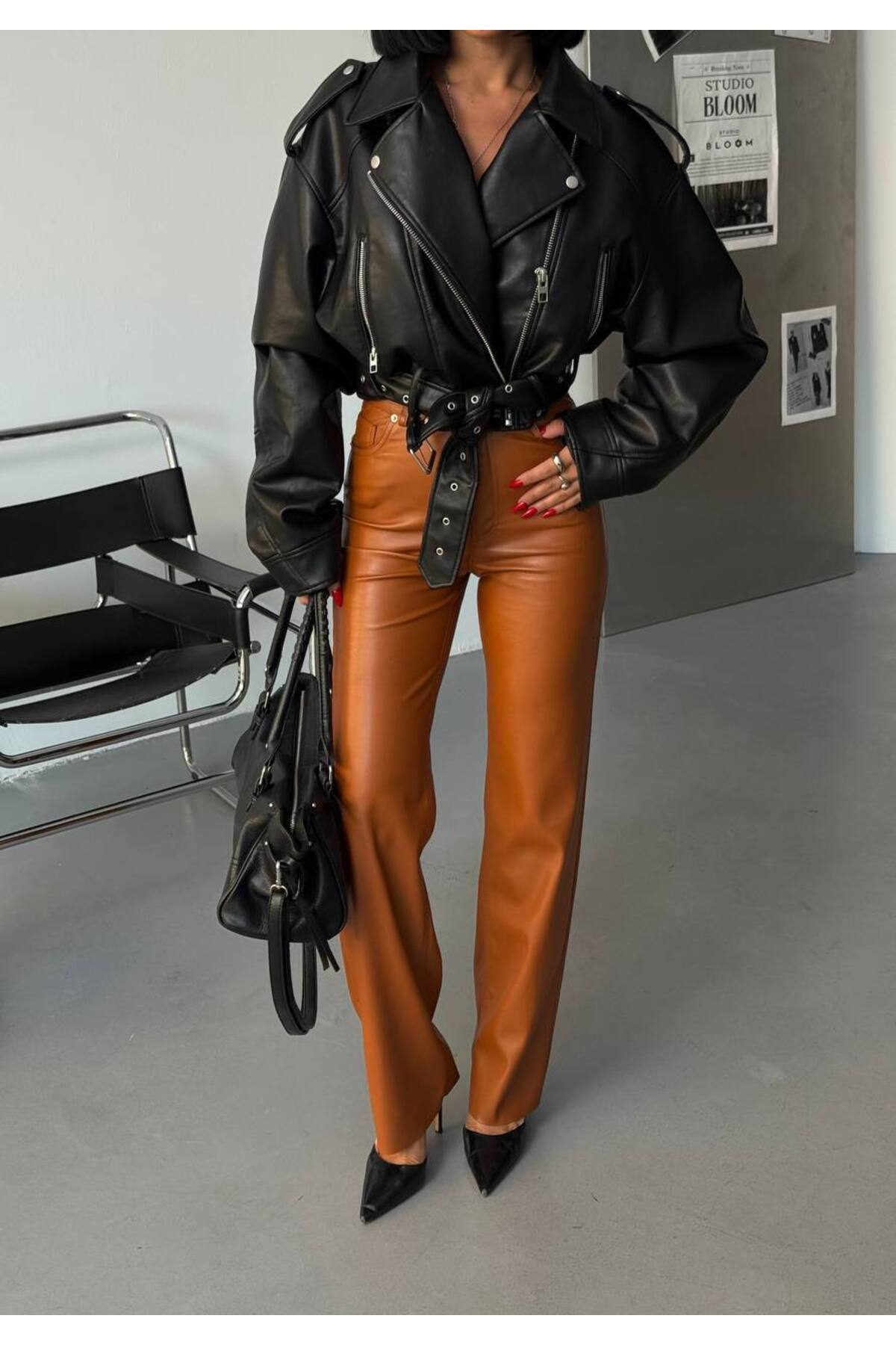 ÇARPICI YÜKSEK BEL DERİ PANTOLON ÇARPICI YÜKSEK BEL DERİ PANTOLON WNRDRİP10 40