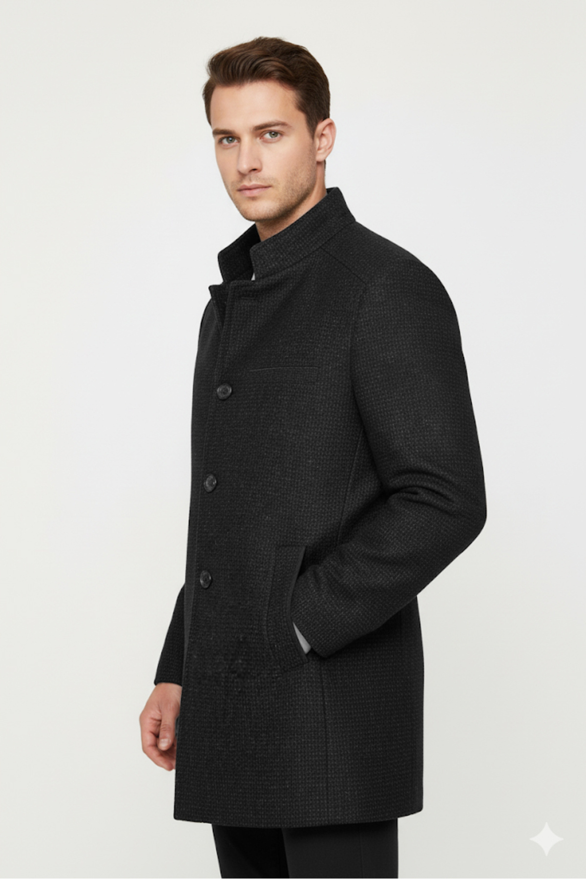 Rahat Kalıp Armürlü Yünlü Antrasit Hakim Yaka Erkek Kaban Rahat Kalıp Armürlü Yünlü Antrasit Hakim Yaka Erkek Kaban 25661 58