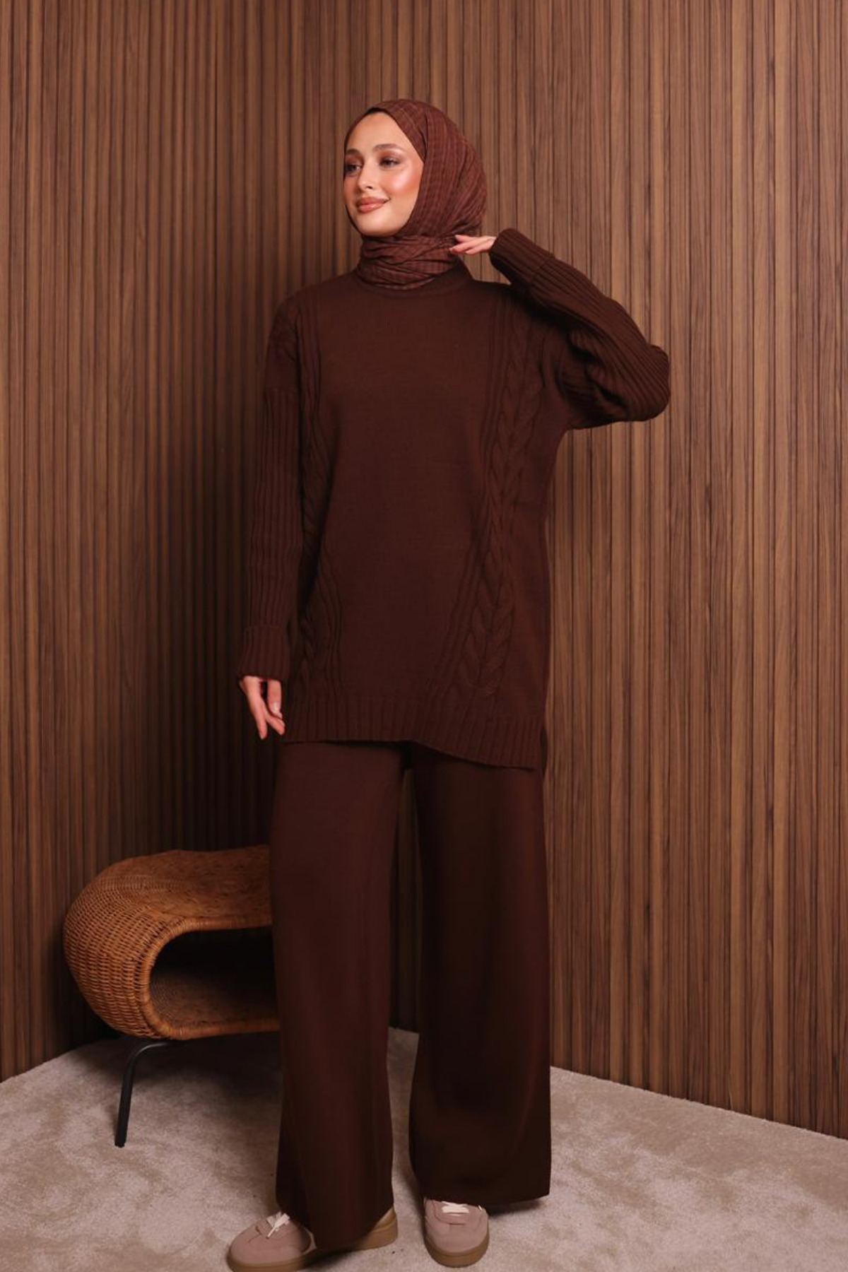 Kadın Oversize Örgü Desenli Pantolonlu Tesettür Triko Takım 3117 Kadın Oversize Örgü Desenli Pantolonlu Tesettür Triko Takım 3117 MB3117 تک سایز