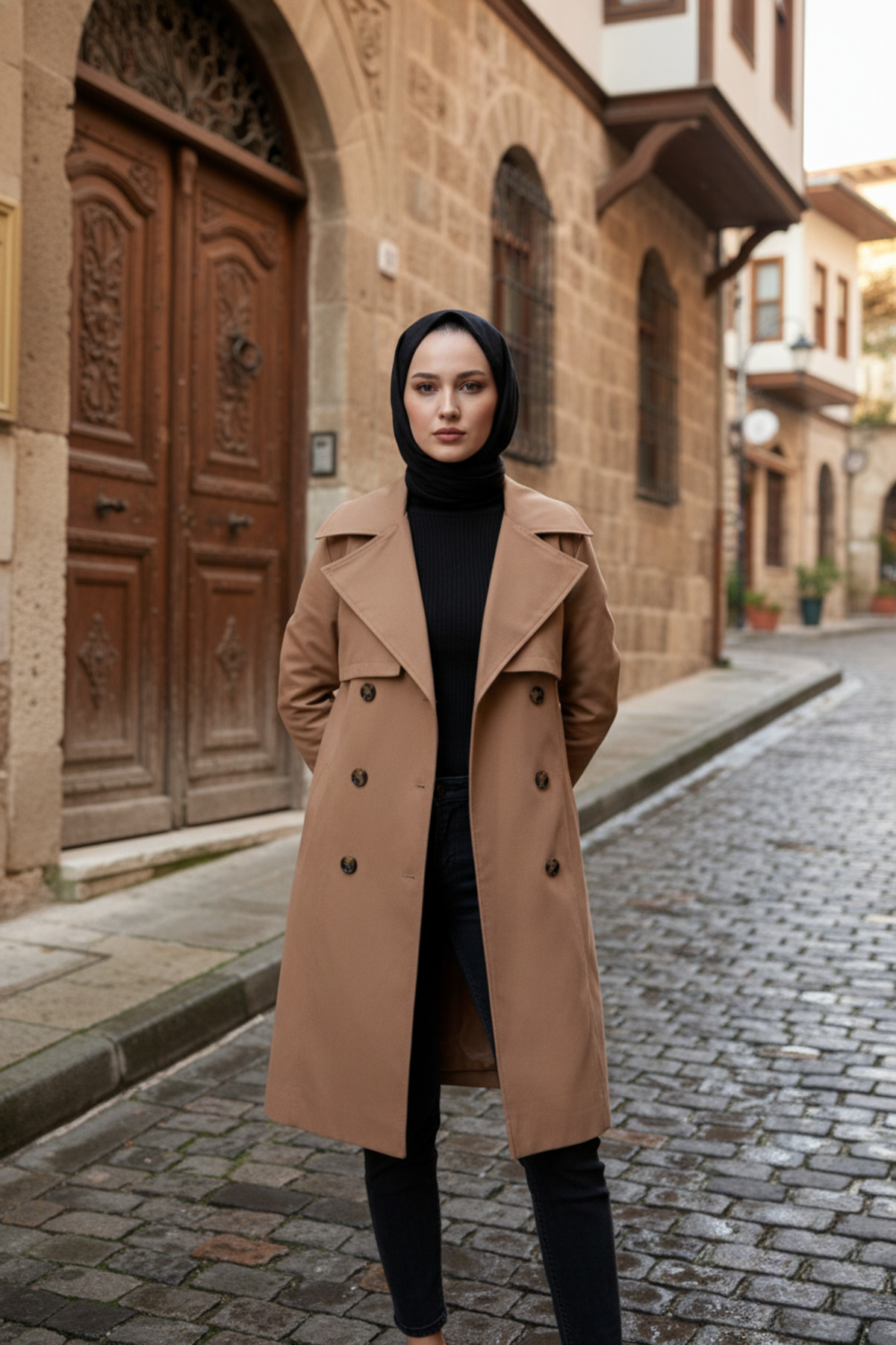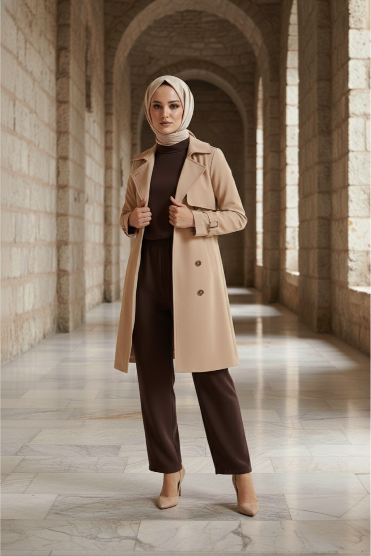 KOYU BEJ %100 Pamuk Gabardin Midi (95 cm) Astarlı Kemerli Kadın Tesettür Trençkot KOYU BEJ %100 Pamuk Gabardin Midi (95 cm) Astarlı Kemerli Kadın Tesettür Trençkot 1113-TES XS-S