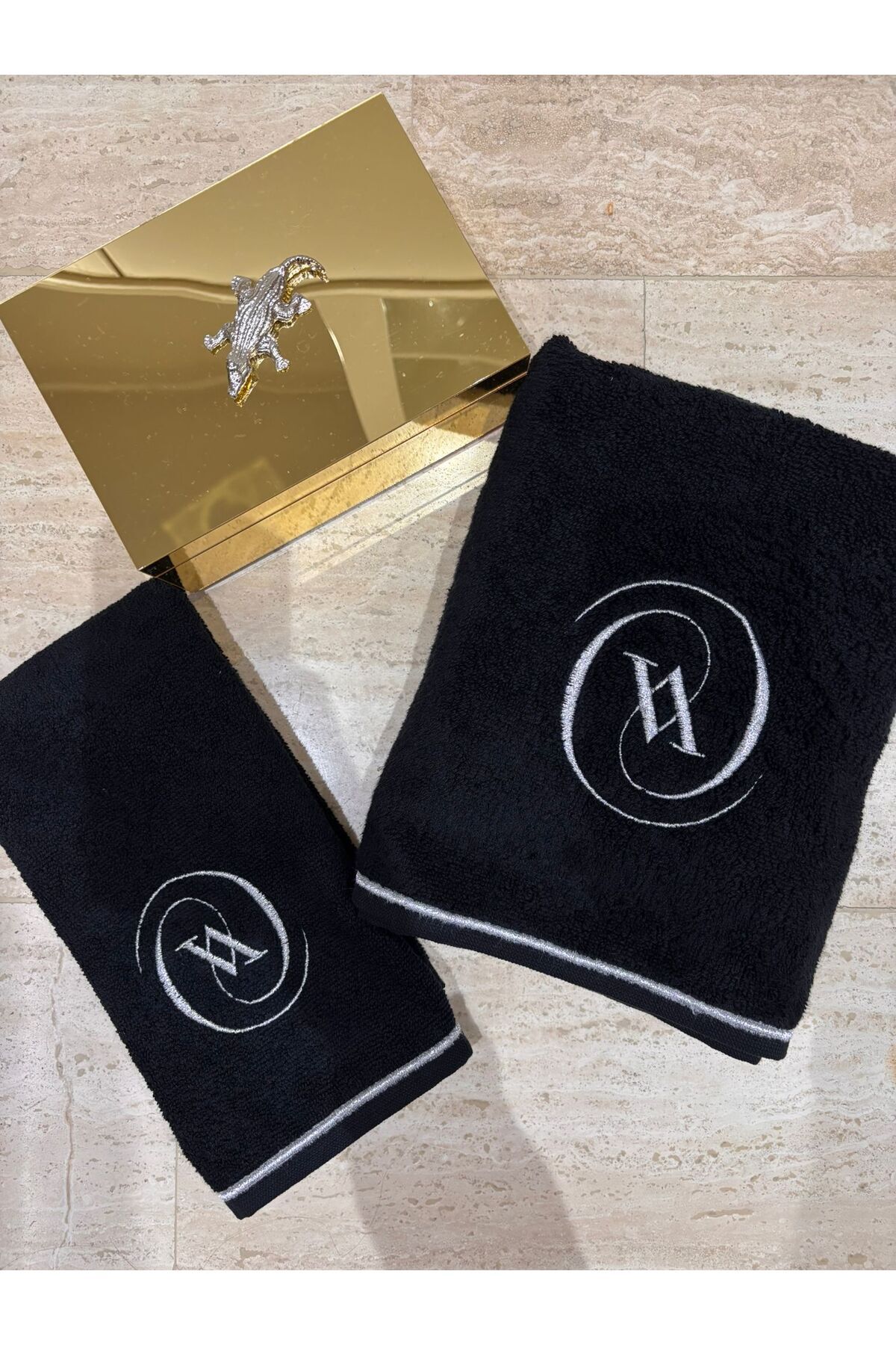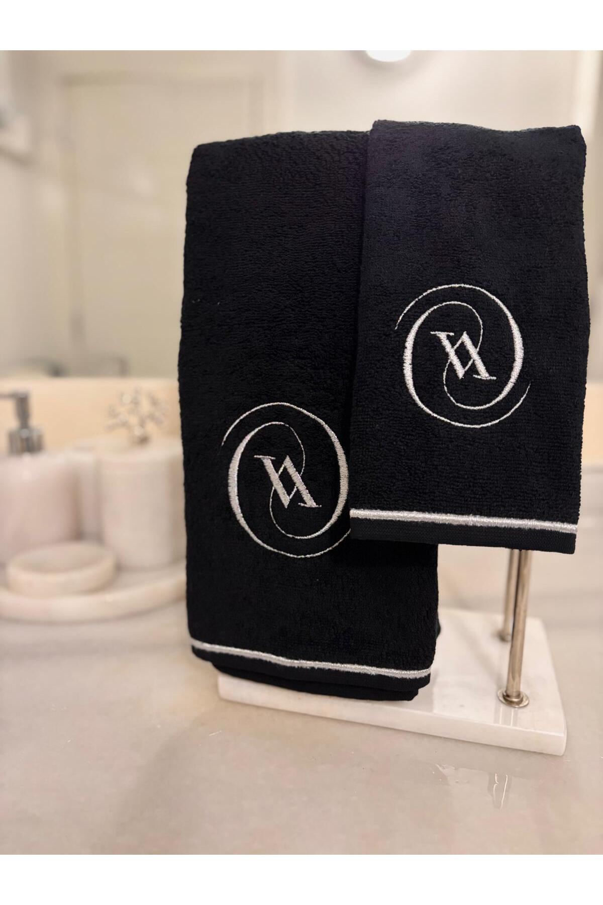 V Harf Siyah Havlu 2'li Gümüş V Harf Siyah Havlu 2'li Gümüş NURHOMING5512 تک سایز