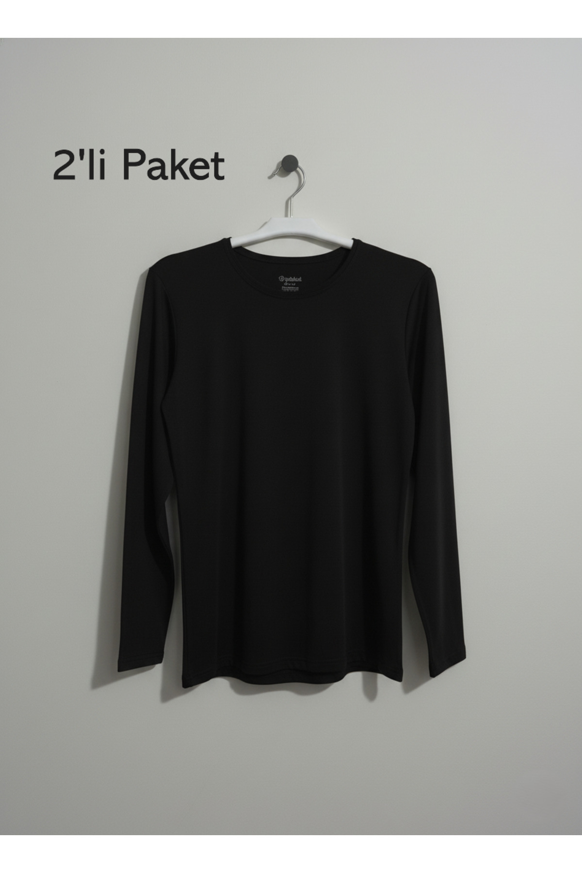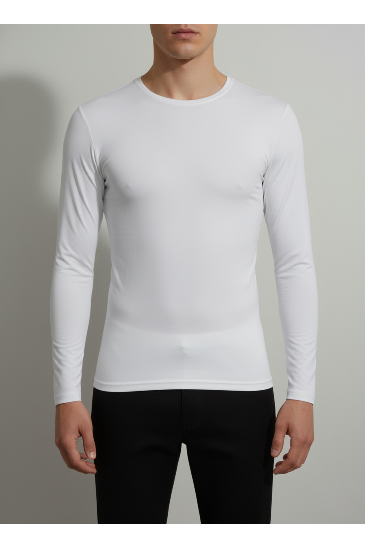 Erkek Bambu Uzun Kollu Sıfır Yaka Tişört 2'li Paket Slim Fit Beyaz - Yıldız Erkek Bambu Uzun Kollu Sıfır Yaka Tişört 2'li Paket Slim Fit Beyaz - Yıldız BUKT1 3XL
