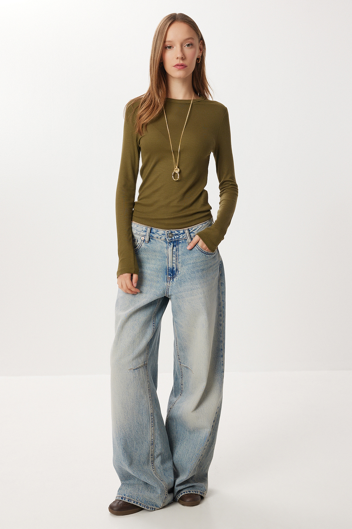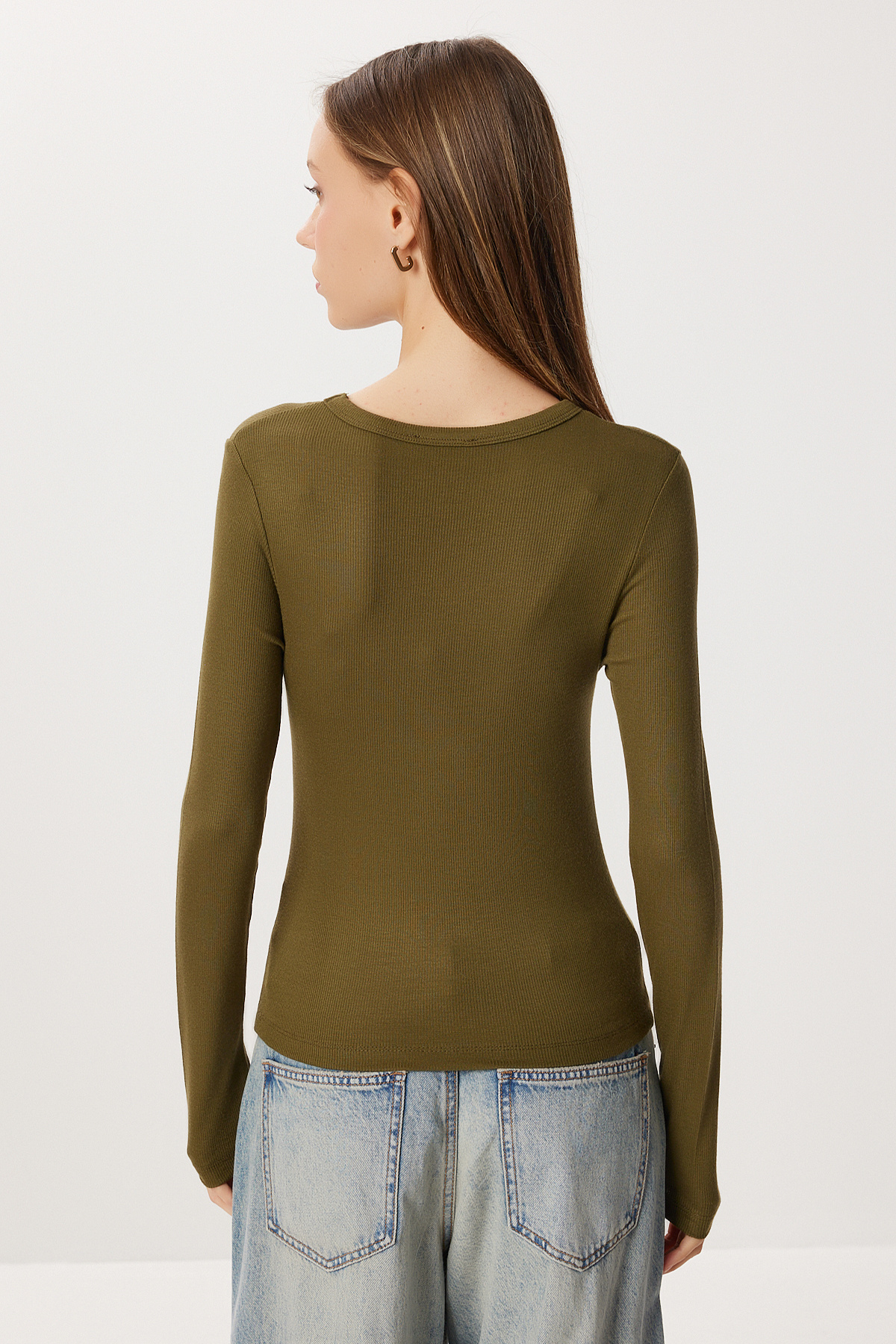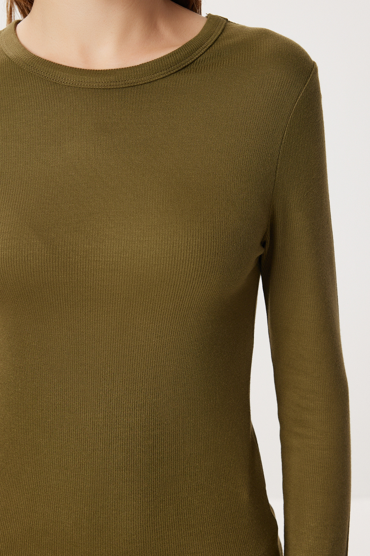 Basic Fitilli Örme Bluz LUB0296 ZEYTİN YEŞİLİ Basic Fitilli Örme Bluz LUB0296 ZEYTİN YEŞİLİ 40