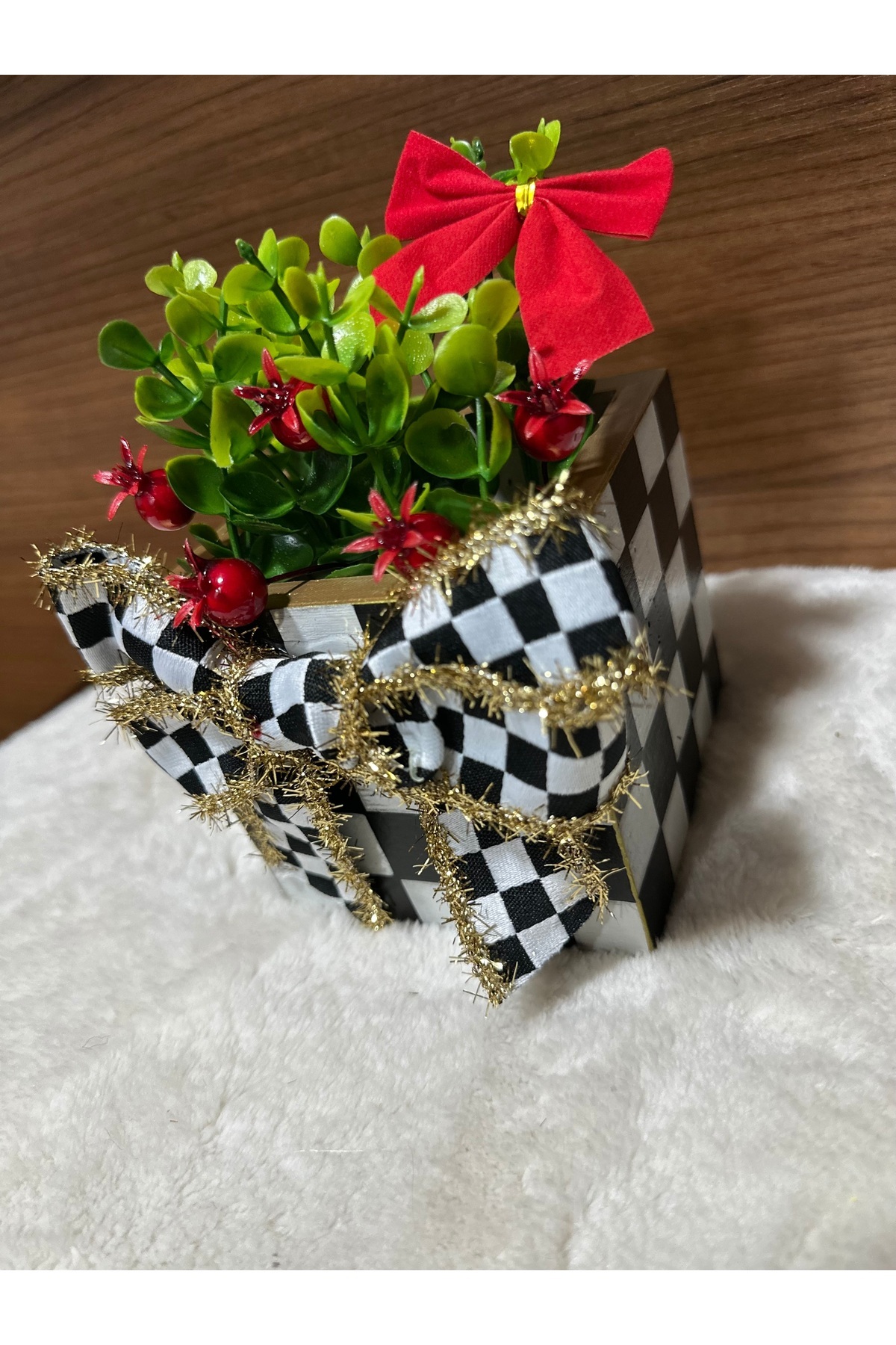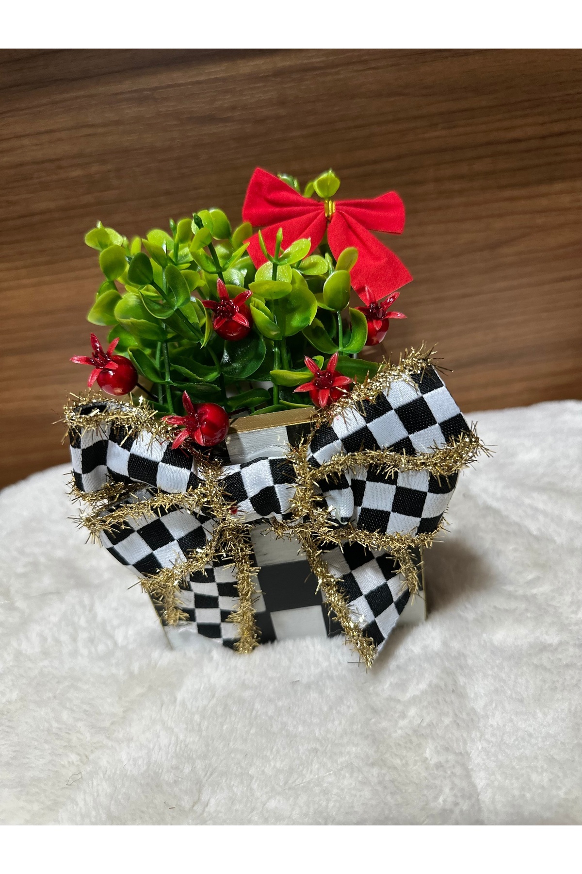 Kokinalı Damalı Saksı Vazo Simli Saçaklı Kurdele Yılbaşı Hediyesi Kokinalı Damalı Saksı Vazo Simli Saçaklı Kurdele Yılbaşı Hediyesi 627818182 تک سایز
