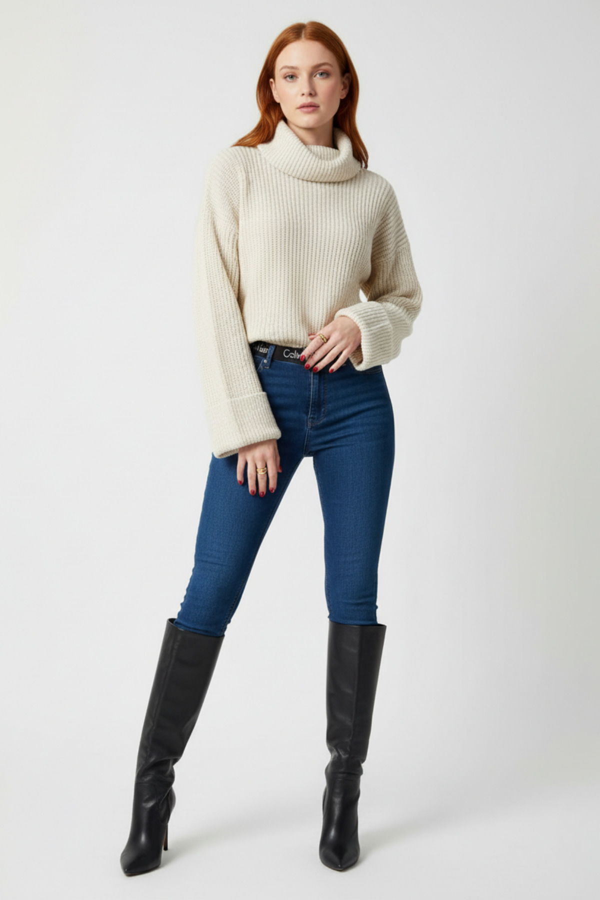 Kadın Kalın Örgü Kışlık Triko Kazak Balıkçı Yaka Crop Kadın Kalın Örgü Kışlık Triko Kazak Balıkçı Yaka Crop mlk-pembe XL