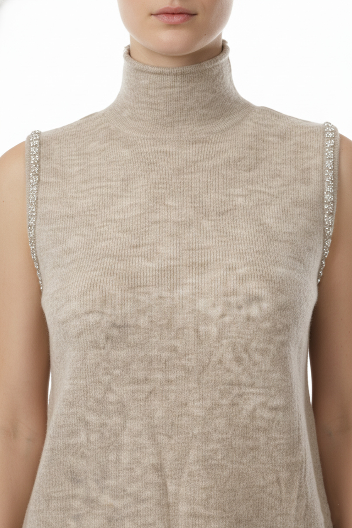 Omuzları Taşlı Dik Yaka Kolsuz Kazak Omuzları Taşlı Dik Yaka Kolsuz Kazak 26K.ON.KZK.63382.01 L
