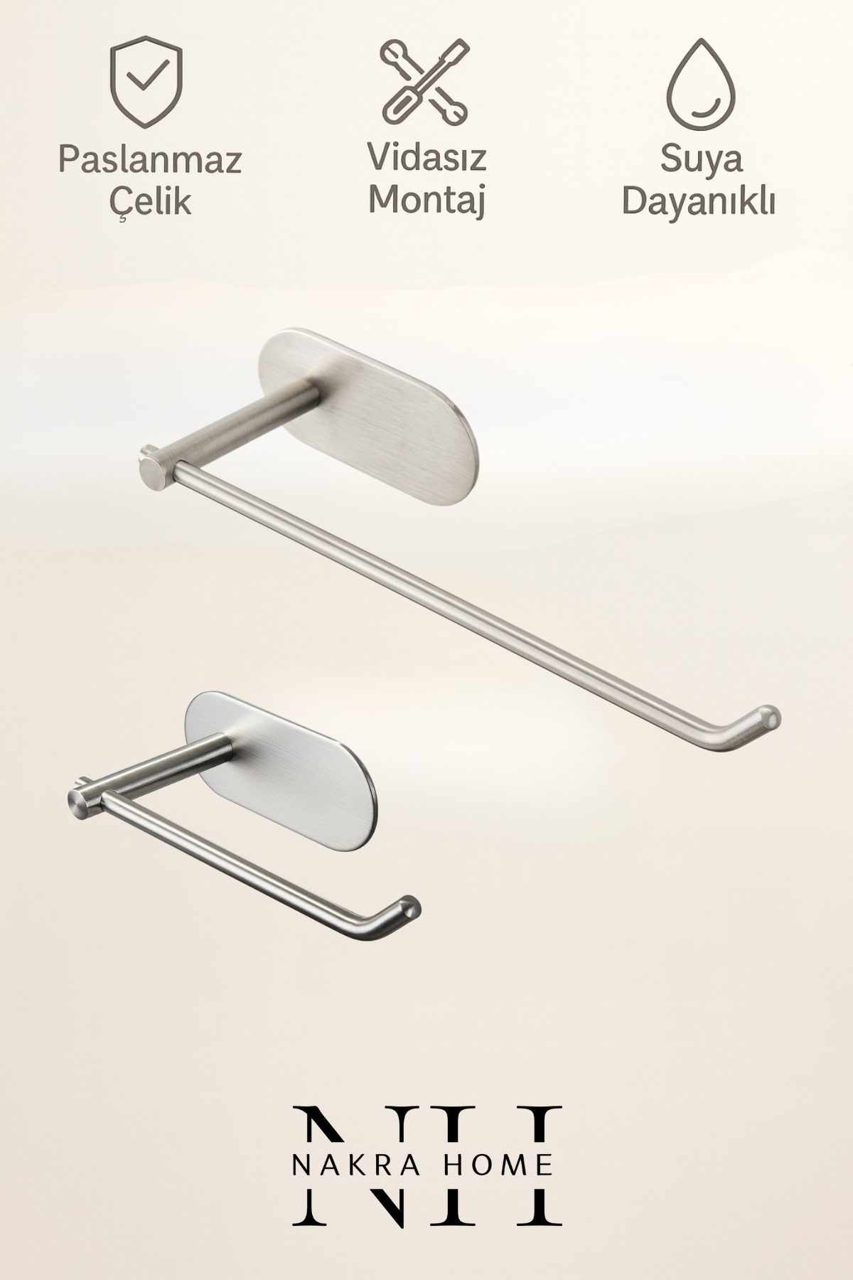 3'lü Set (Paslanmaz Çelik Yapışkanlı Havlu Askılığı, Tuvalet Kağıtlığı ve 2'li Askılık) YAPIŞKANLI 3'lü Set (Paslanmaz Çelik Yapışkanlı Havlu Askılığı, Tuvalet Kağıtlığı ve 2'li Askılık) YAPIŞKANLI NKR-HV0001SET3 تک سایز