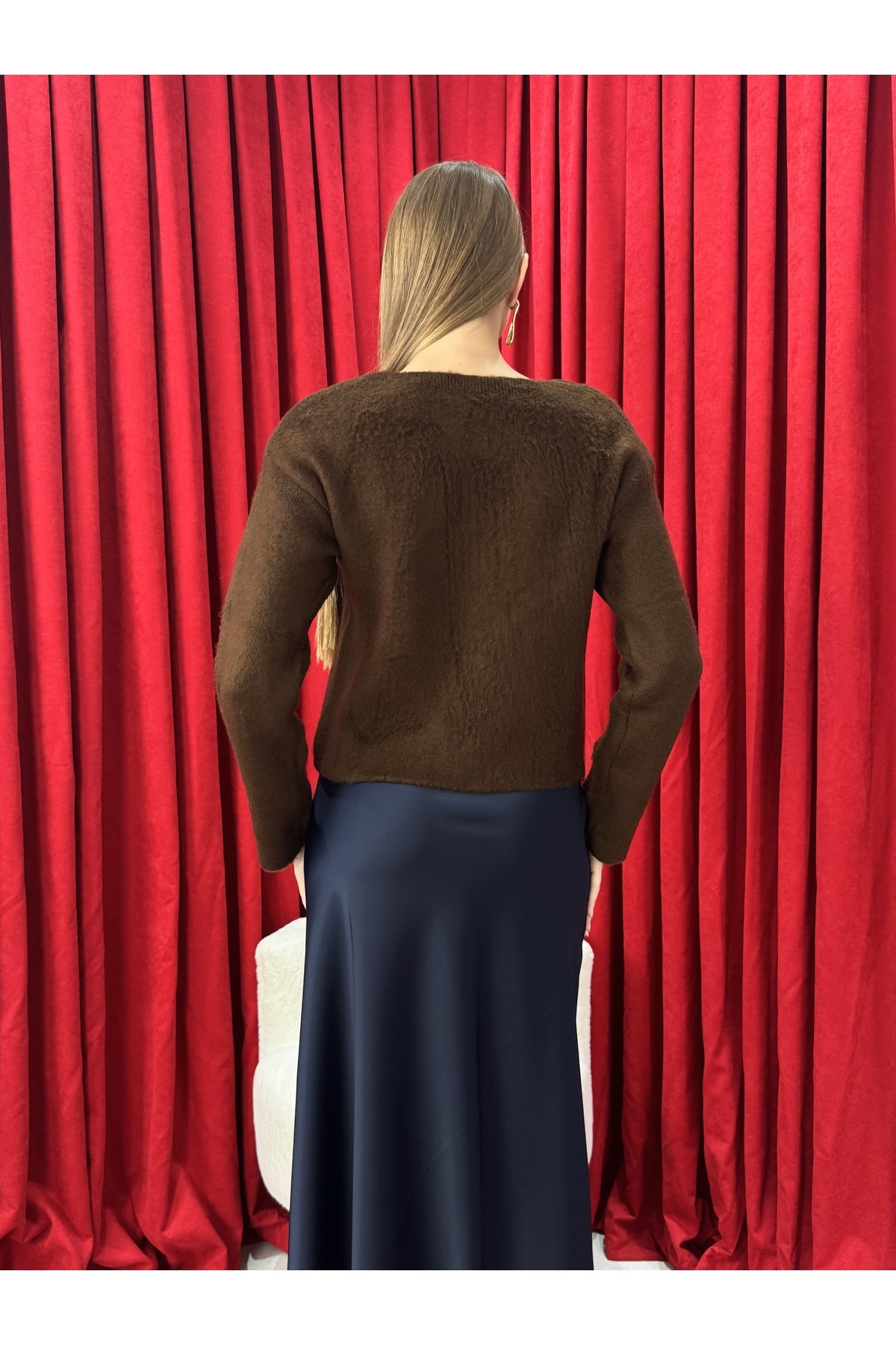 Asimetrik Kesim Pat Detaylı Şardonlu Triko Hırka Asimetrik Kesim Pat Detaylı Şardonlu Triko Hırka 1025NW Standart