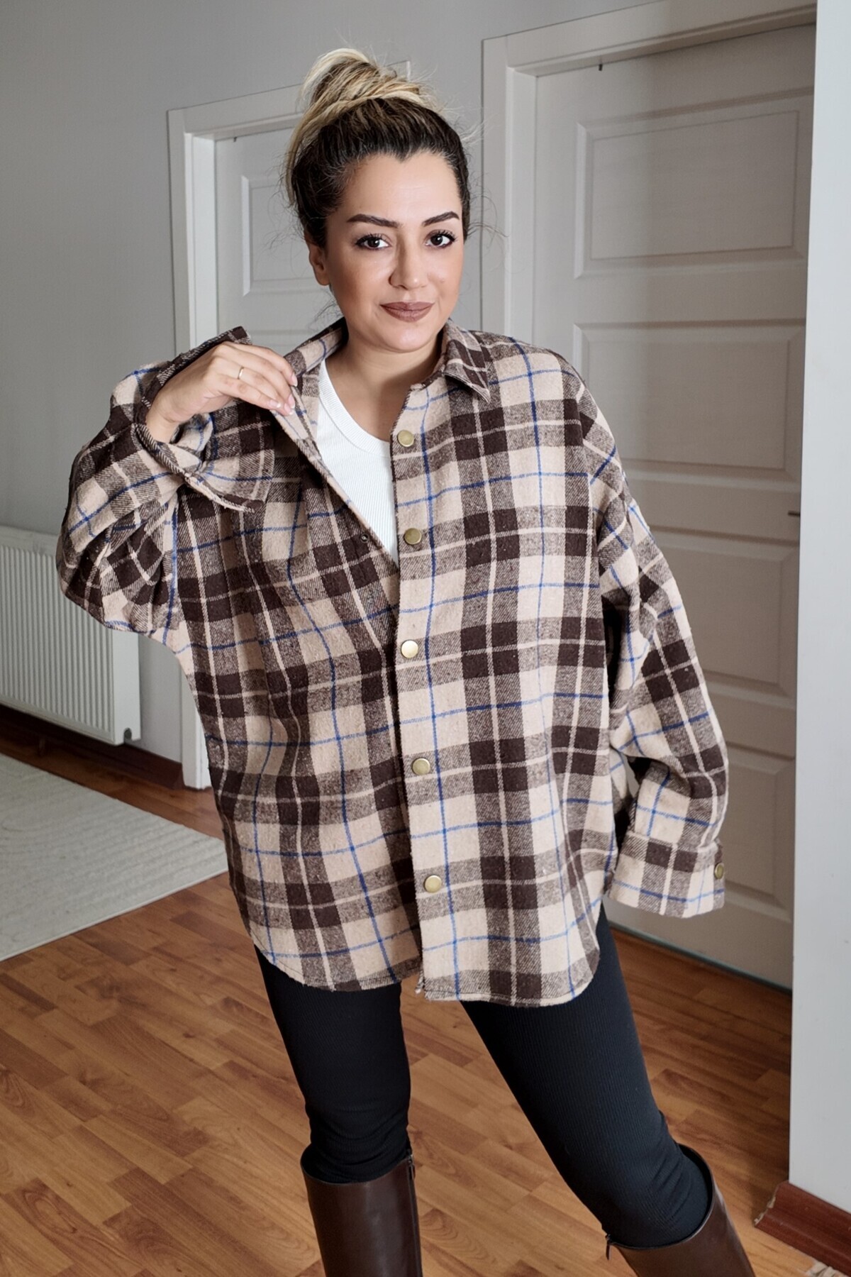 Pamuklu Ekose Oduncu Gömlek Oversize Pamuklu Ekose Oduncu Gömlek Oversize od02 L