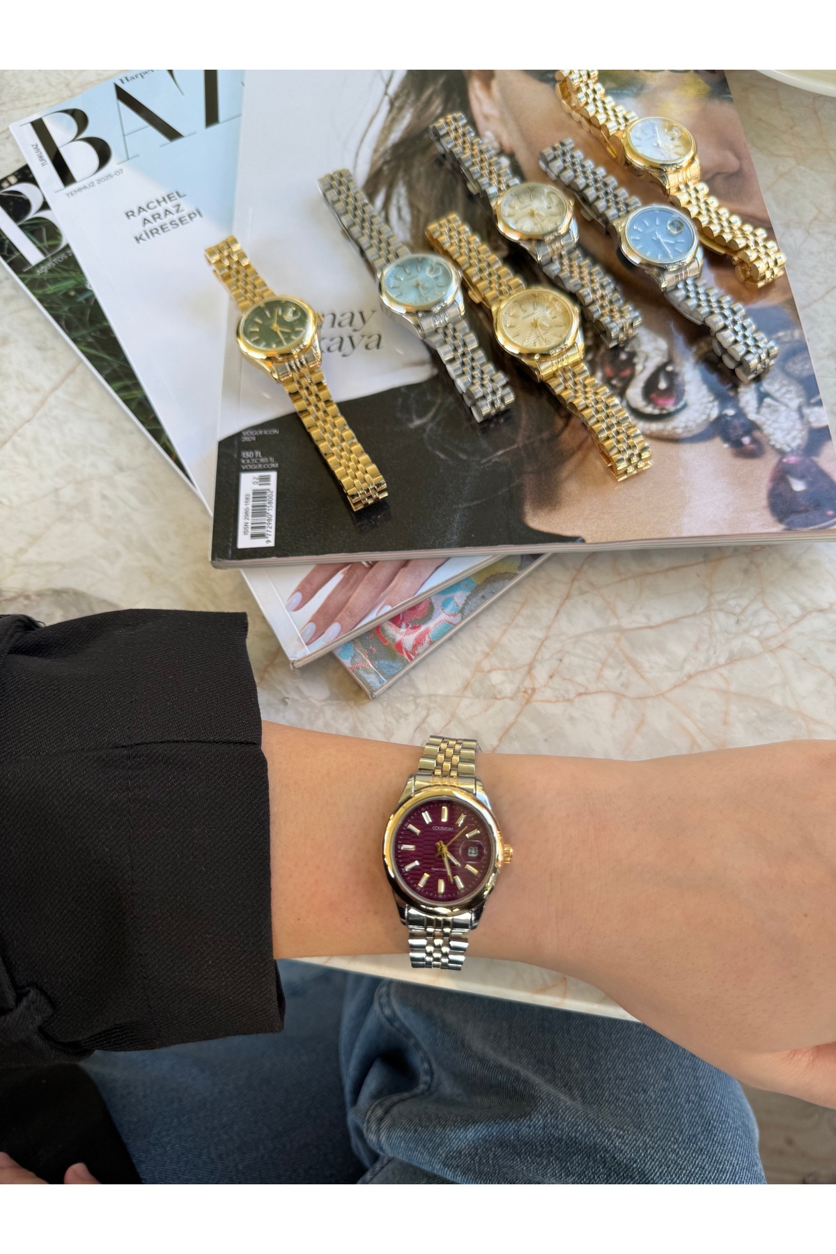 AURORA BORDO ÇELİK KADIN SAAT AURORA BORDO ÇELİK KADIN SAAT HNF66 تک سایز