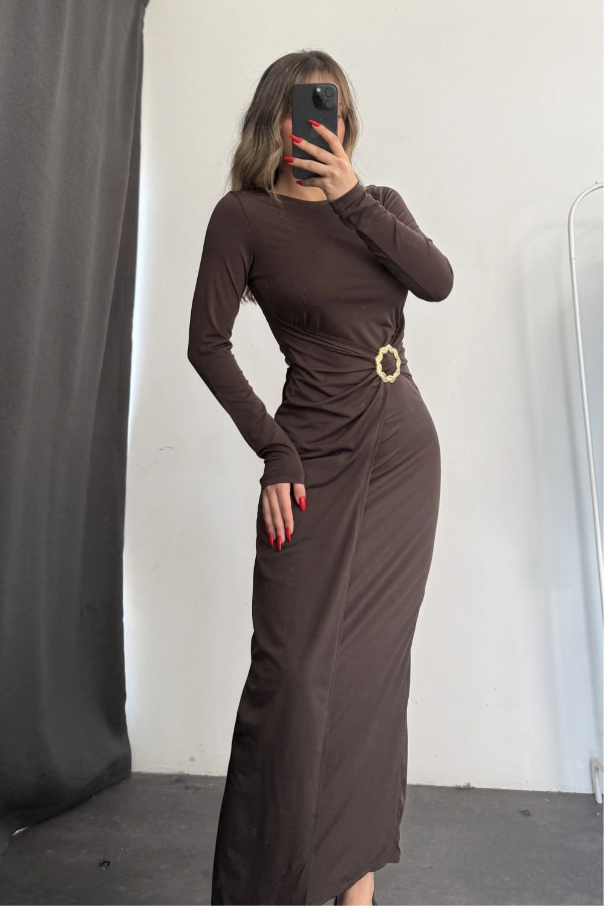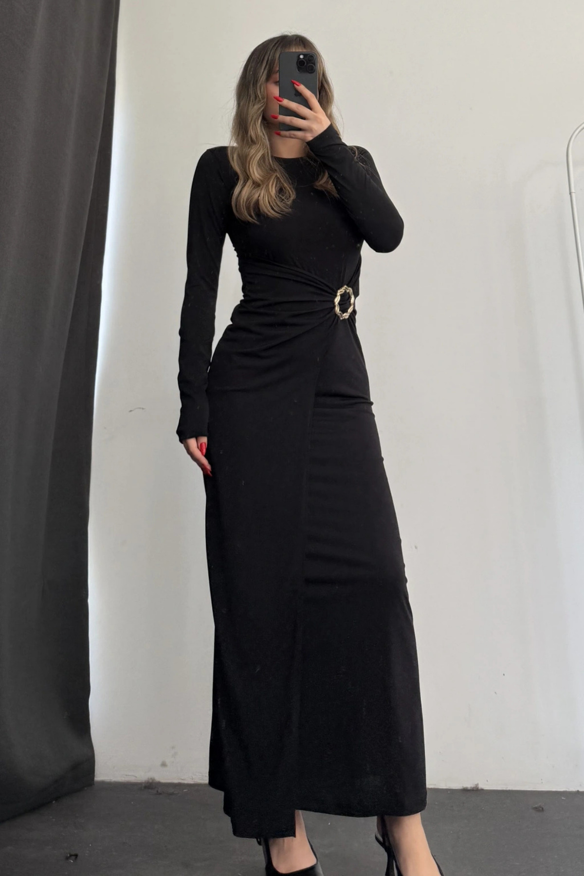Bel Toka Detaylı Uzun Elbise Bel Toka Detaylı Uzun Elbise MZN2165 L