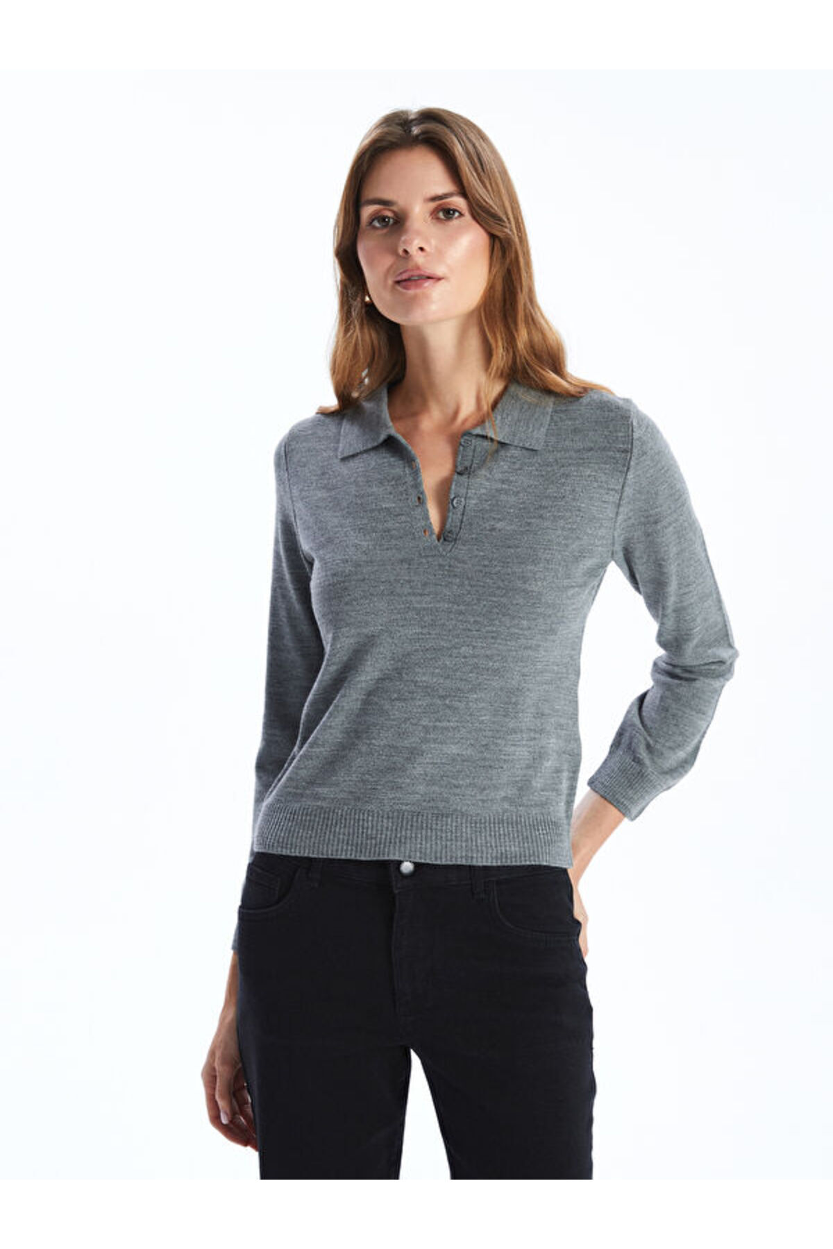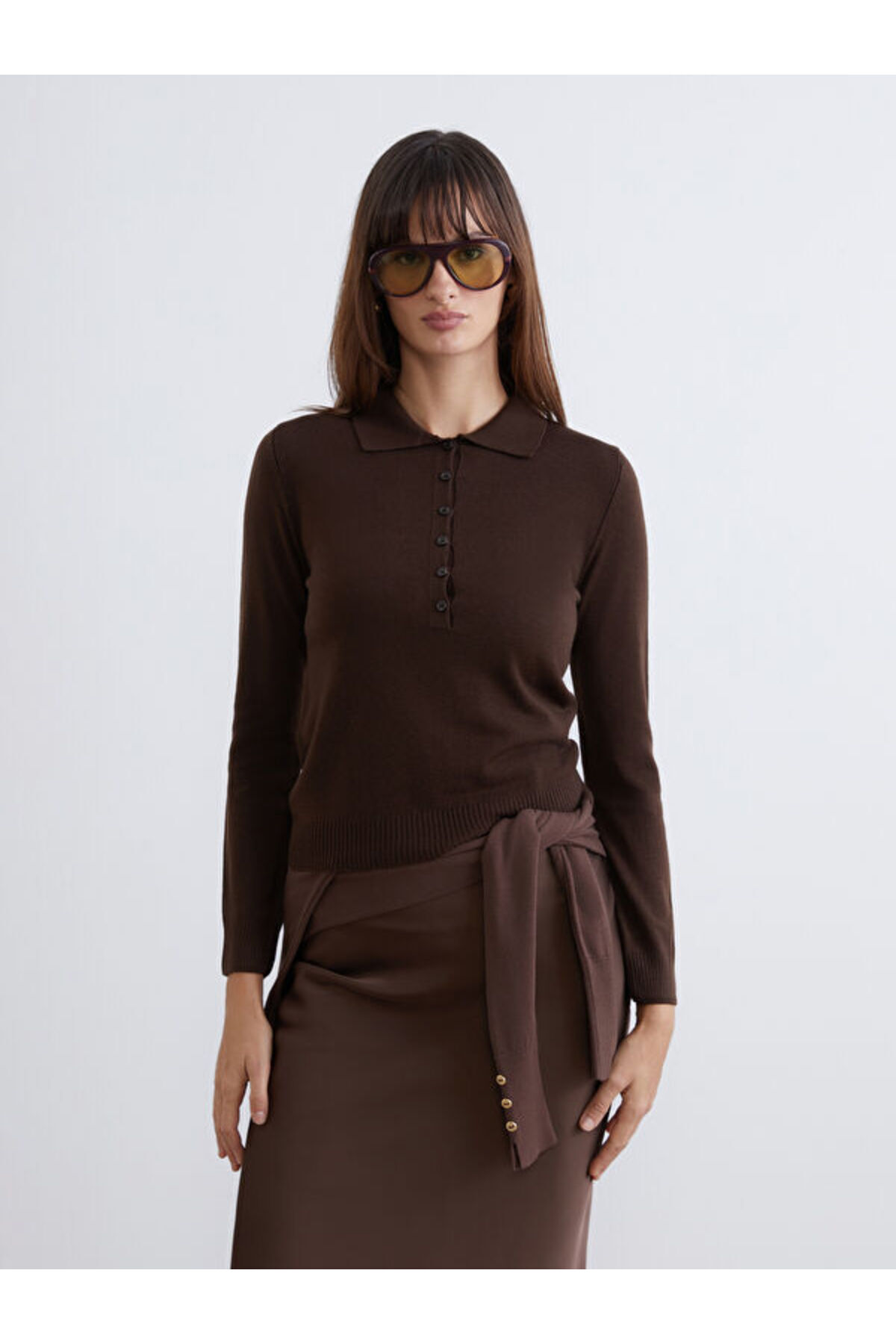 Polo Yaka Kadın Triko Kazak Polo Yaka Kadın Triko Kazak W5N036Z8-Liwensa XL