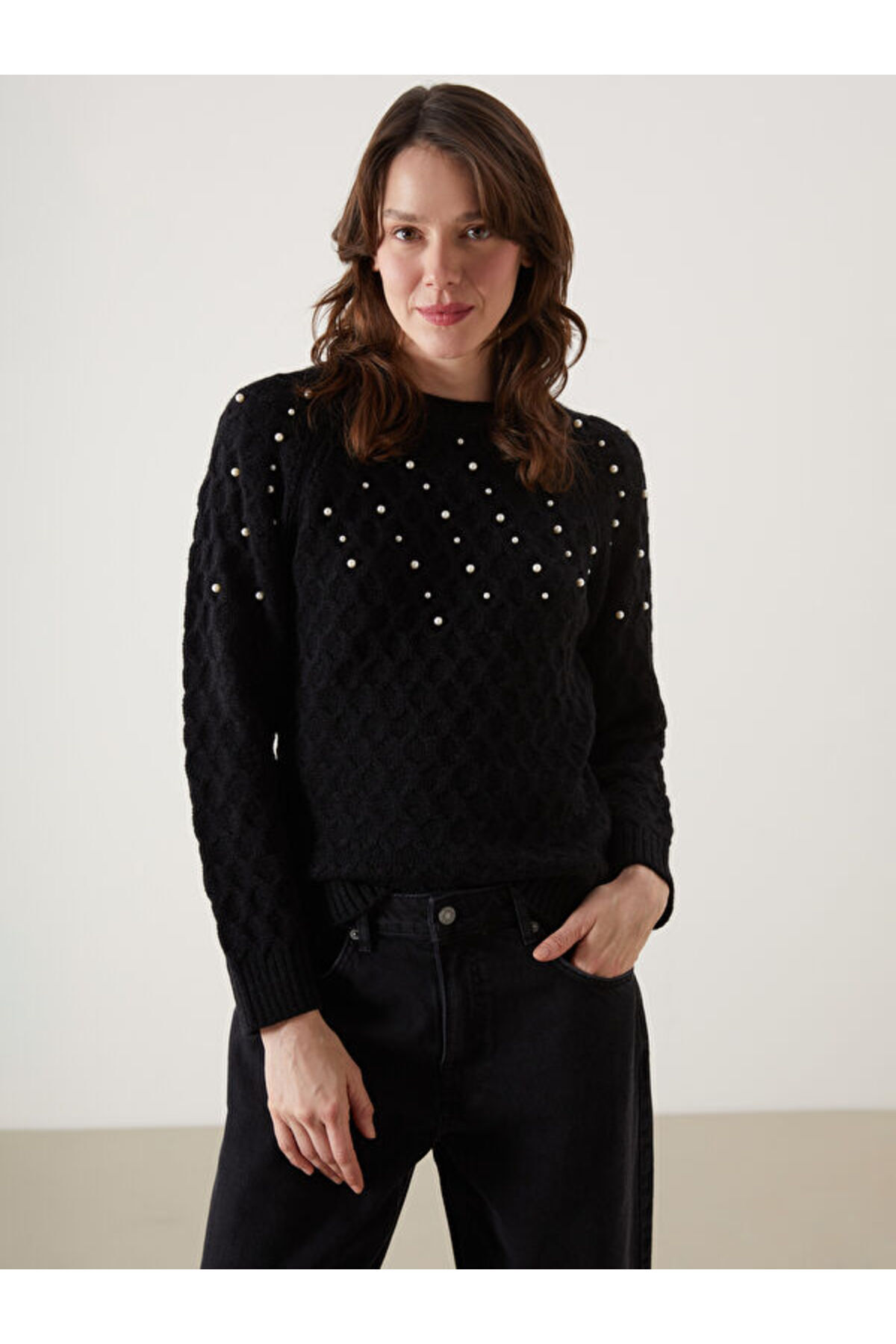 Bisiklet Yaka Boncuk İşlemeli Kadın Triko Kazak Bisiklet Yaka Boncuk İşlemeli Kadın Triko Kazak S5LM89Z8-Liwensa 2XL