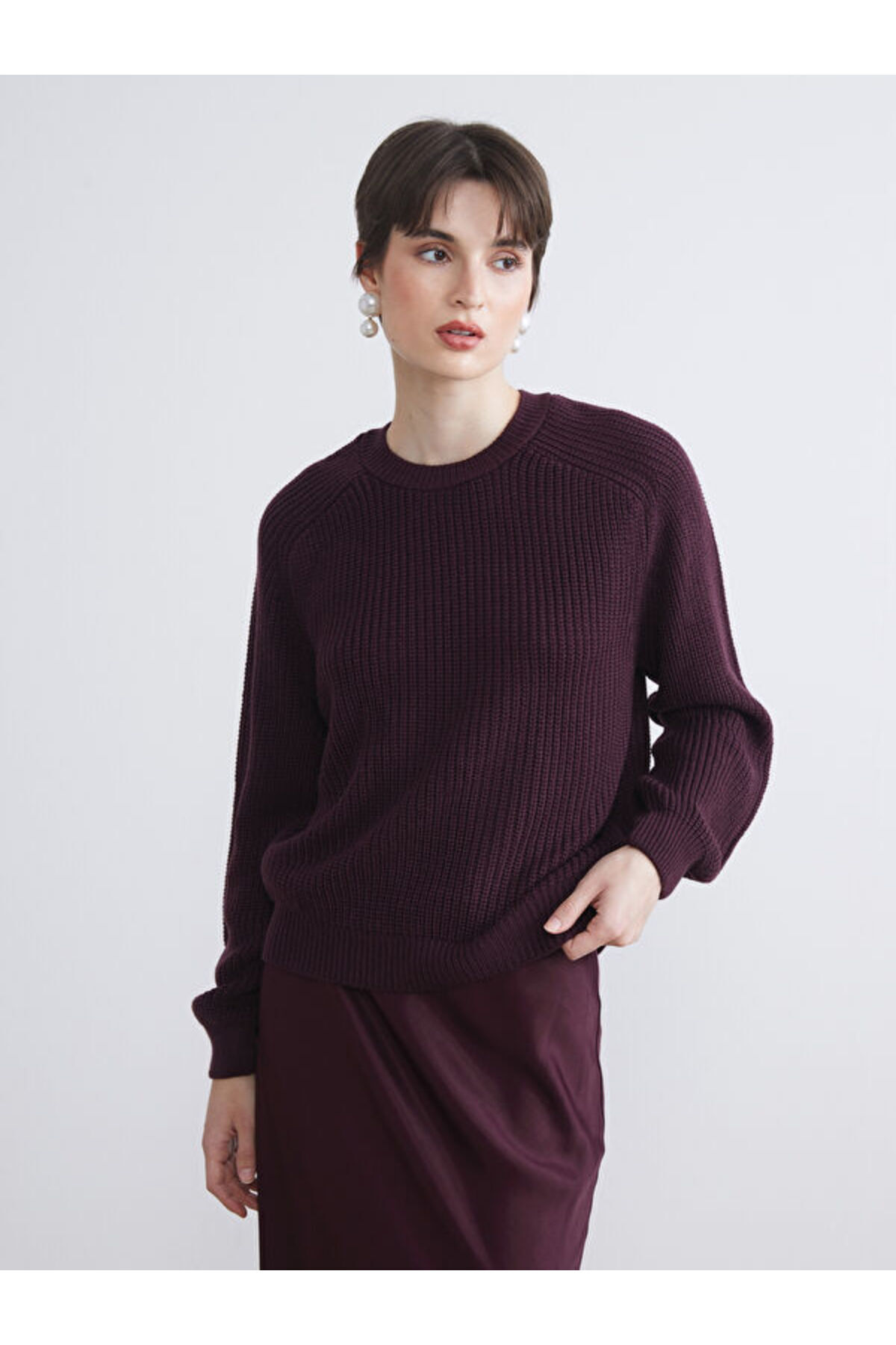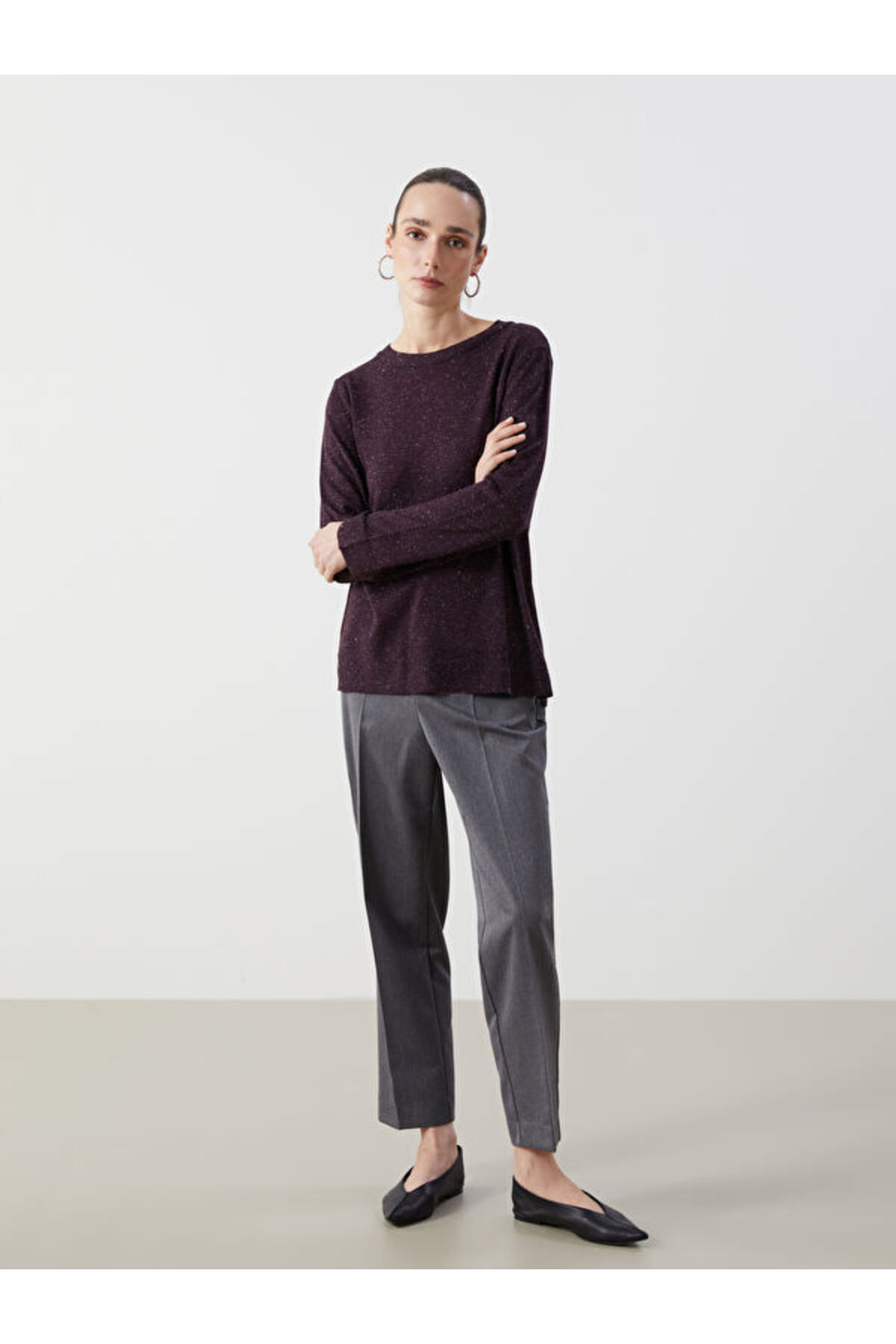 Bisiklet Yaka Parlak Görünümlü Kadın Triko Kazak Bisiklet Yaka Parlak Görünümlü Kadın Triko Kazak W4KN29Z8-Liwensa M