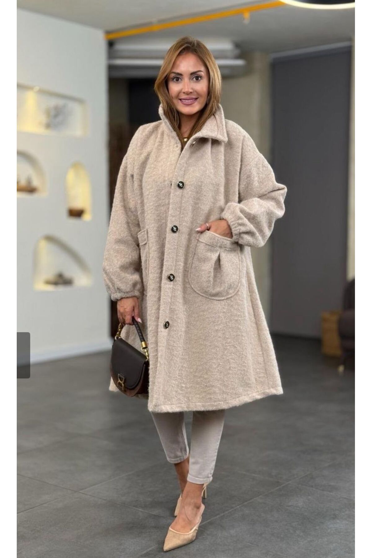 Kadın Uzun Kollu Yakalı Düğmeli Süet Mini Manto Kadın Uzun Kollu Yakalı Düğmeli Süet Mini Manto SNN-6905aaf19d884 2XL-3XL
