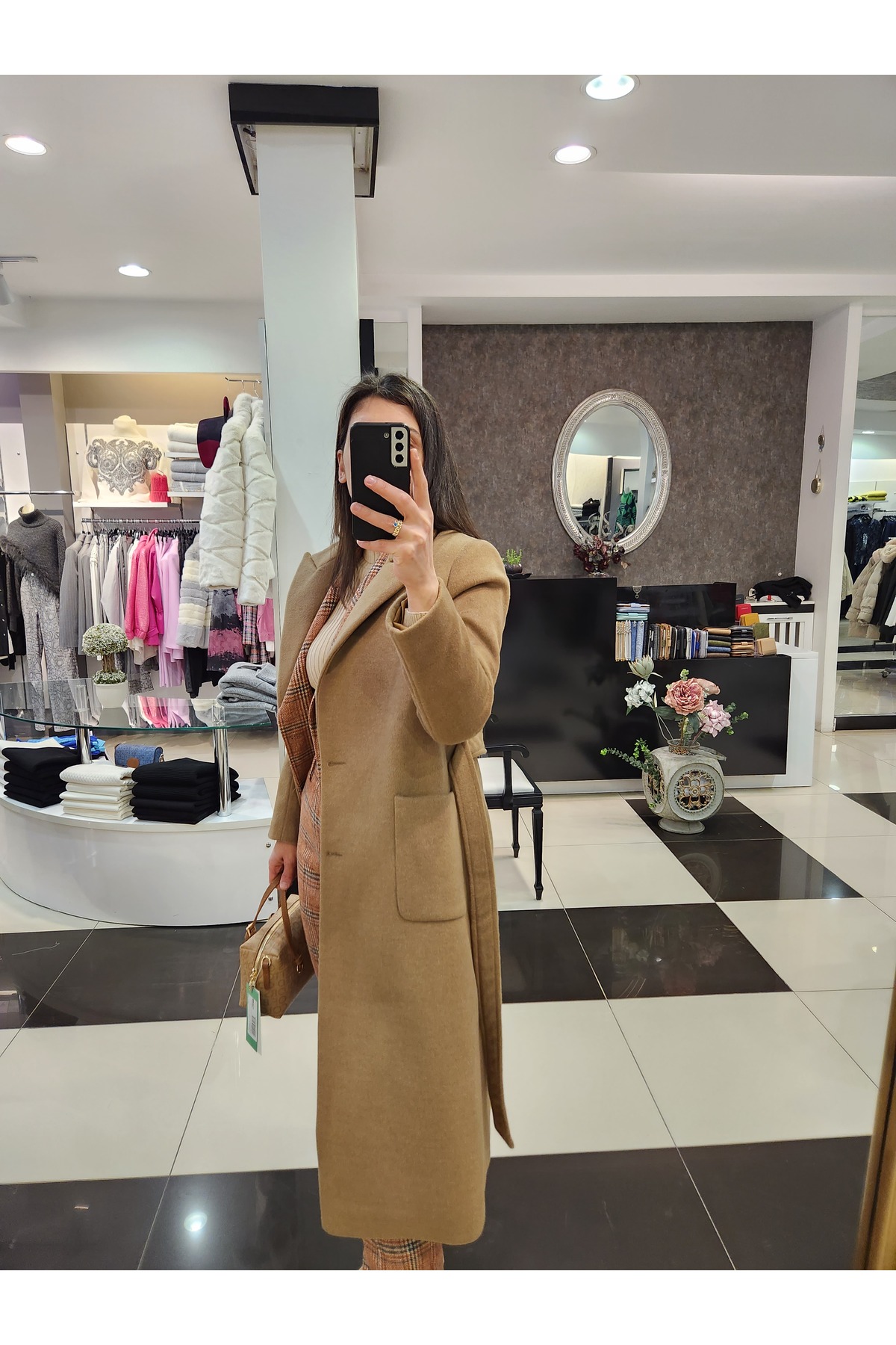 Oversize Uzun Kahverengi Kaşe Kadın Pardesü Oversize Uzun Kahverengi Kaşe Kadın Pardesü 01-25065 M