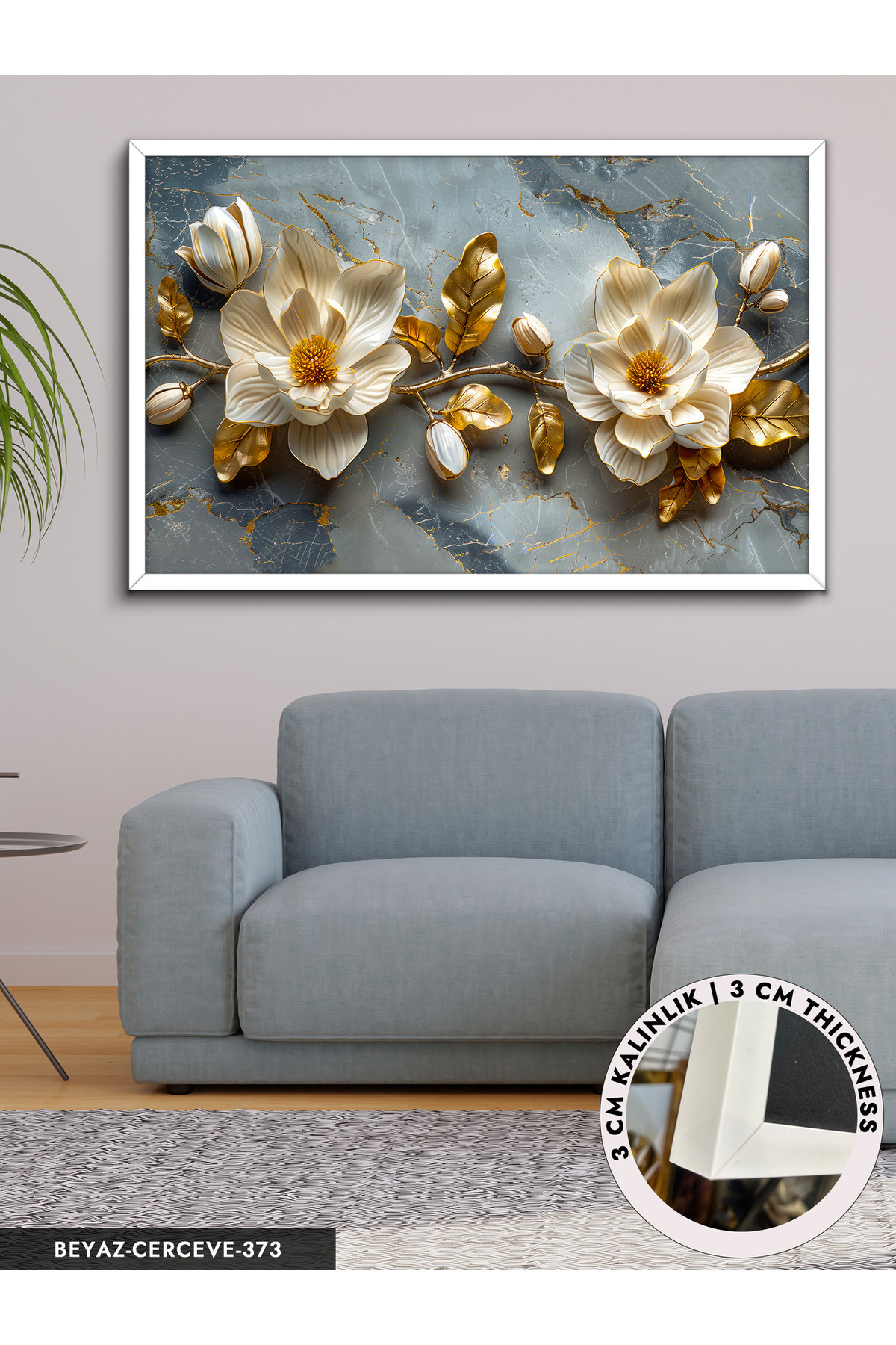Gold Yapraklı Çiçekler Tek Parça Çerçeveli Kanvas Tablo Gold Yapraklı Çiçekler Tek Parça Çerçeveli Kanvas Tablo CVKVS373 100 x 68
