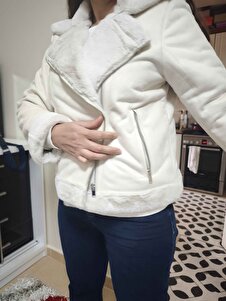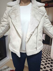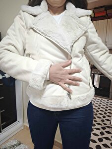 Cepli Fermuarlı Uzun Kollu Peluş Yaka Süet Görünümlü Crop Biker Ceket Cepli Fermuarlı Uzun Kollu Peluş Yaka Süet Görünümlü Crop Biker Ceket 6WAK20012EW 42