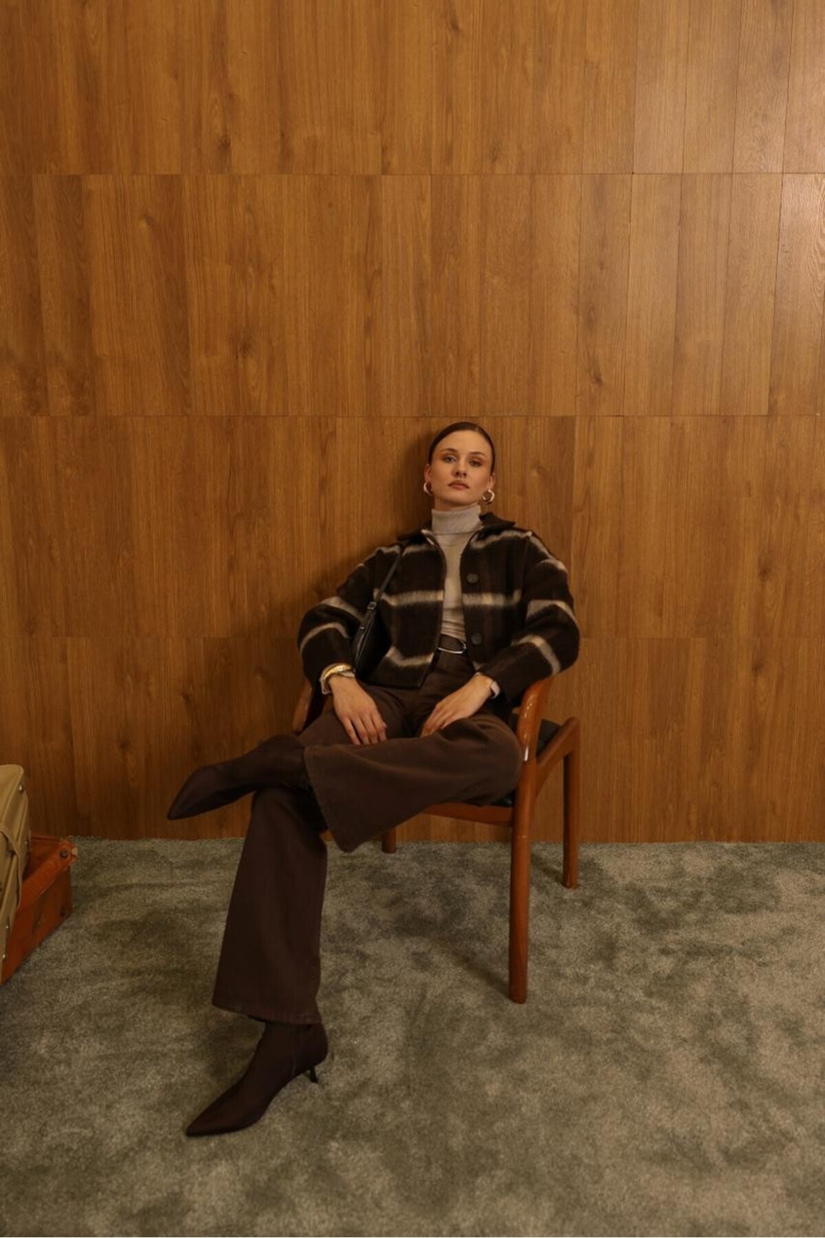 Kadın Çizgili Örme Triko Hırka Ceket Düğmeli Kışlık Kalın Badi Ceket Kadın Çizgili Örme Triko Hırka Ceket Düğmeli Kışlık Kalın Badi Ceket 38181-H-M L