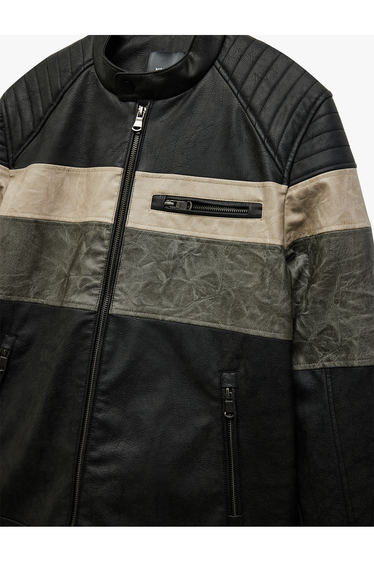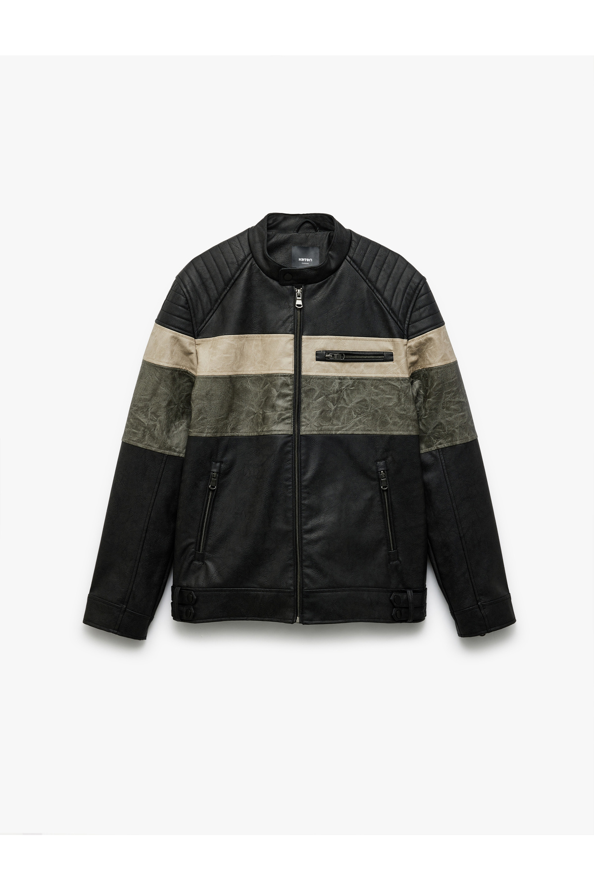 Fermuar Detaylı Cepli Hakim Yaka Uzun Kollu Deri Ceket Fermuar Detaylı Cepli Hakim Yaka Uzun Kollu Deri Ceket 6WAM20096HW XL