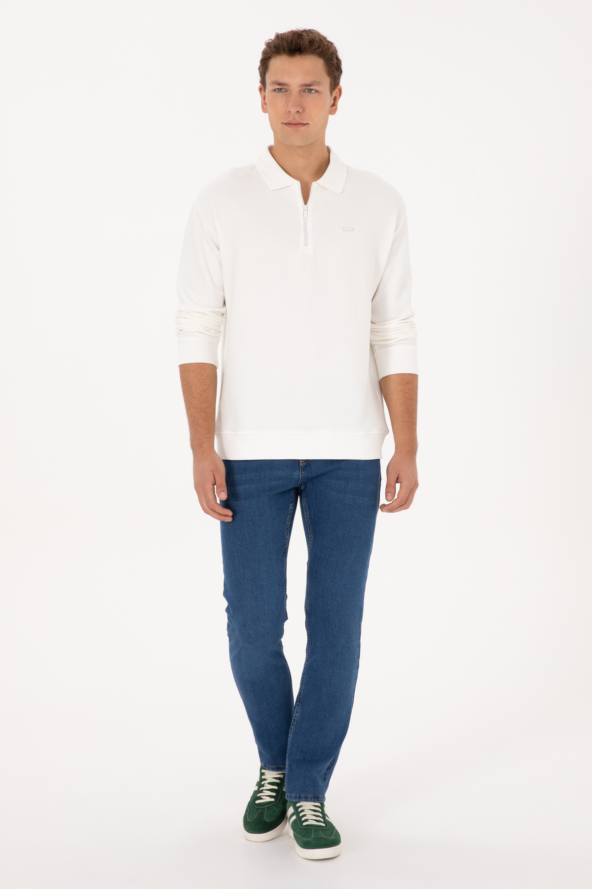 Erkek Comfort Fit Yarım Fermuarlı Beyaz Sweatshirt 50316484-VR184 Erkek Comfort Fit Yarım Fermuarlı Beyaz Sweatshirt 50316484-VR184 L