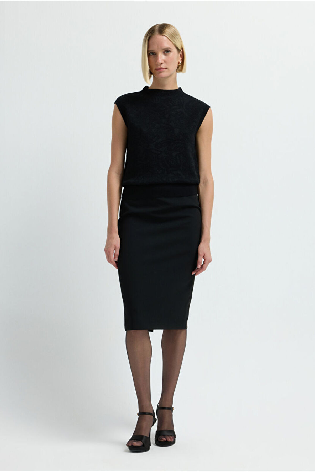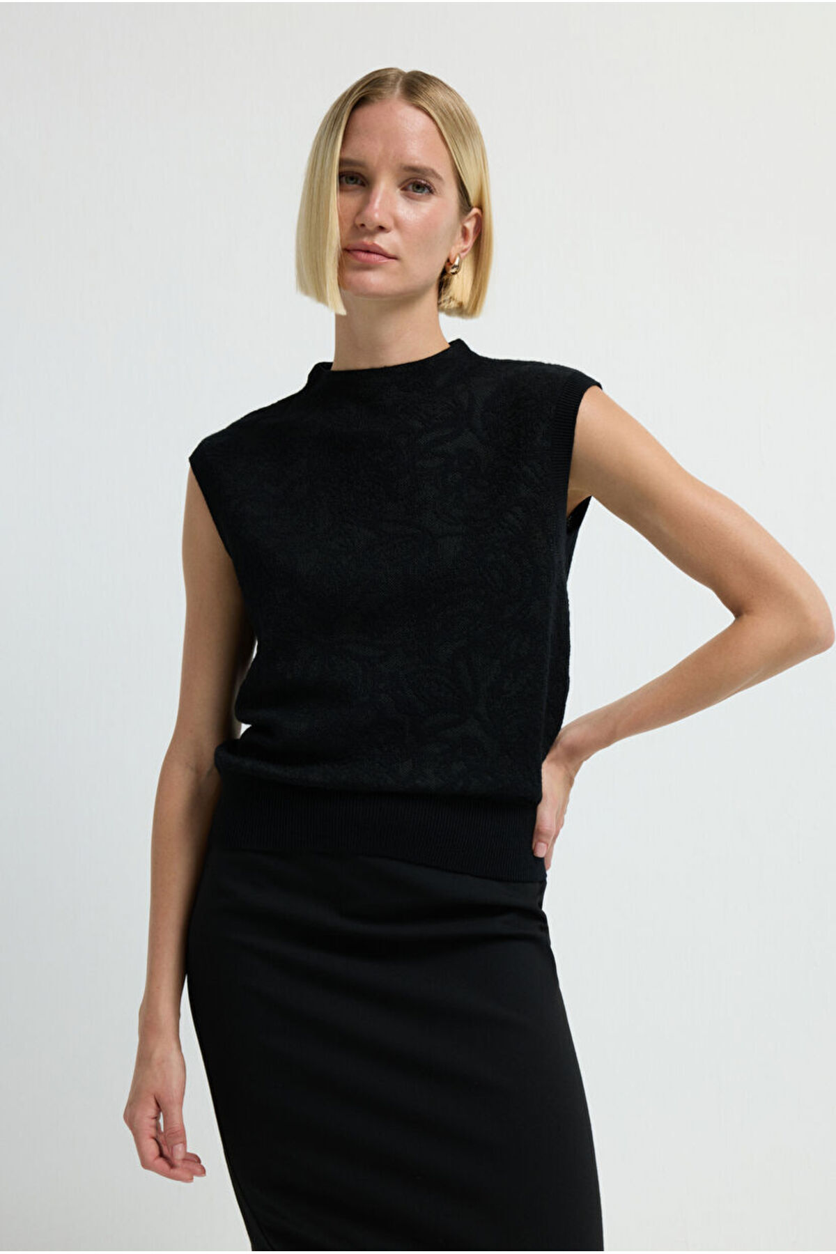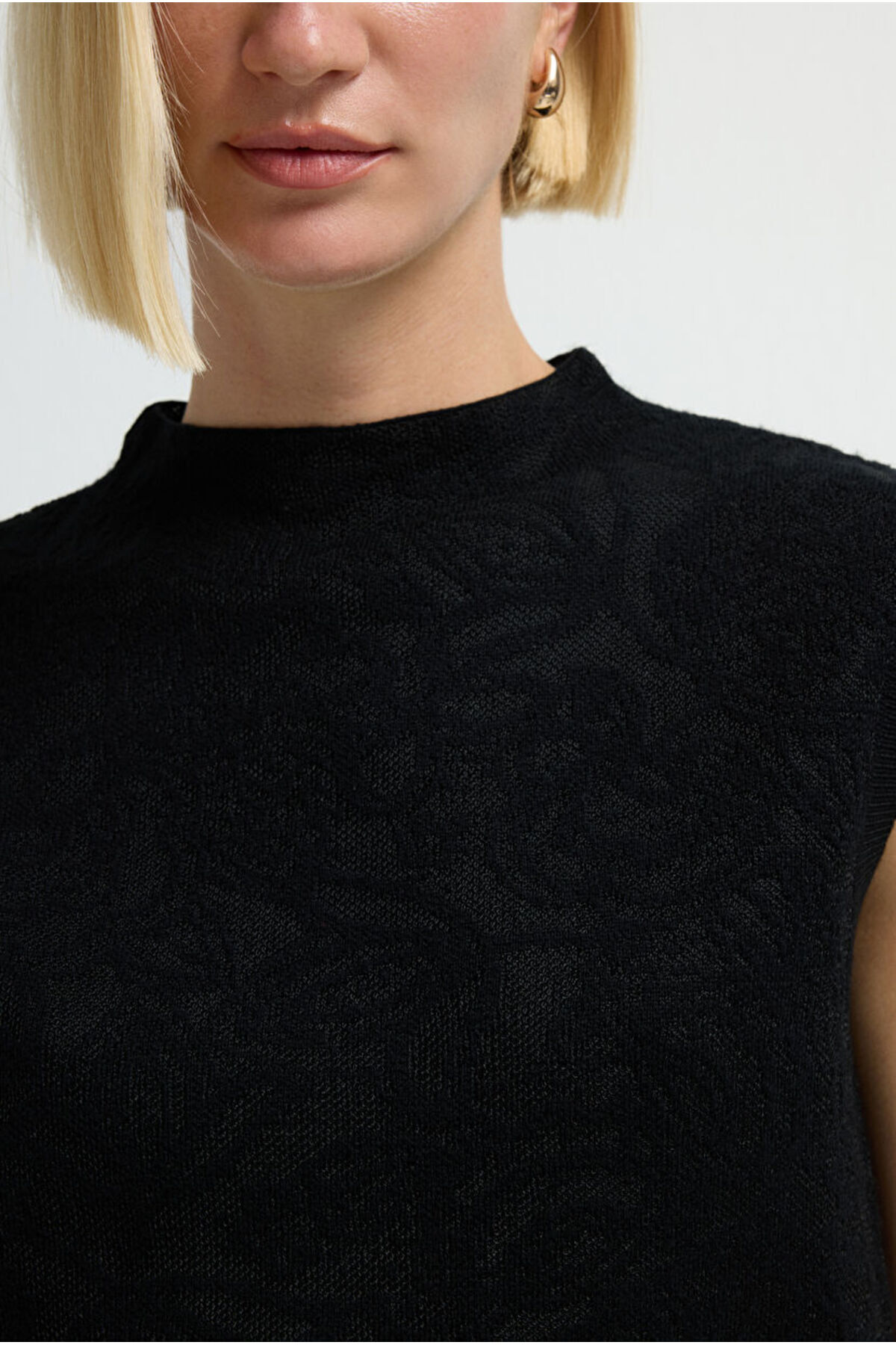 Kolsuz Desenli Triko Bluz Kolsuz Desenli Triko Bluz 11545373000 XL