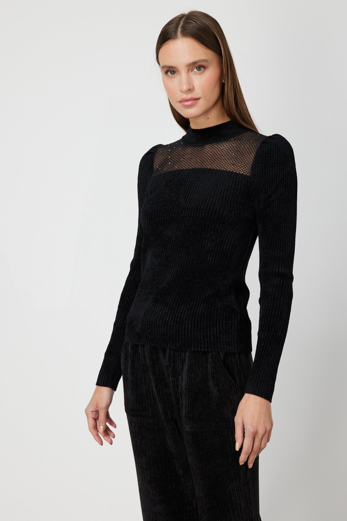 Deri Detaylı Simli Triko Kazak Deri Detaylı Simli Triko Kazak 26K.ON.KZK.66308.01 L