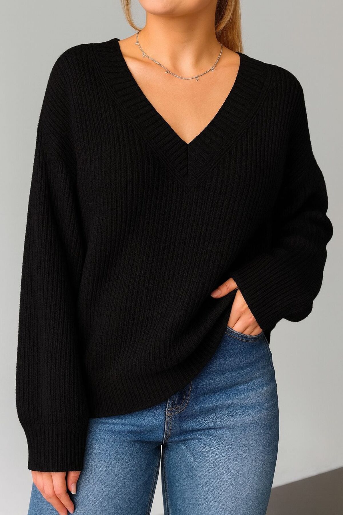 KADIN DÖKÜMLÜ V YAKA SELANİK ÖRGÜ BASİC KAZAK KADIN DÖKÜMLÜ V YAKA SELANİK ÖRGÜ BASİC KAZAK YG2510 XL
