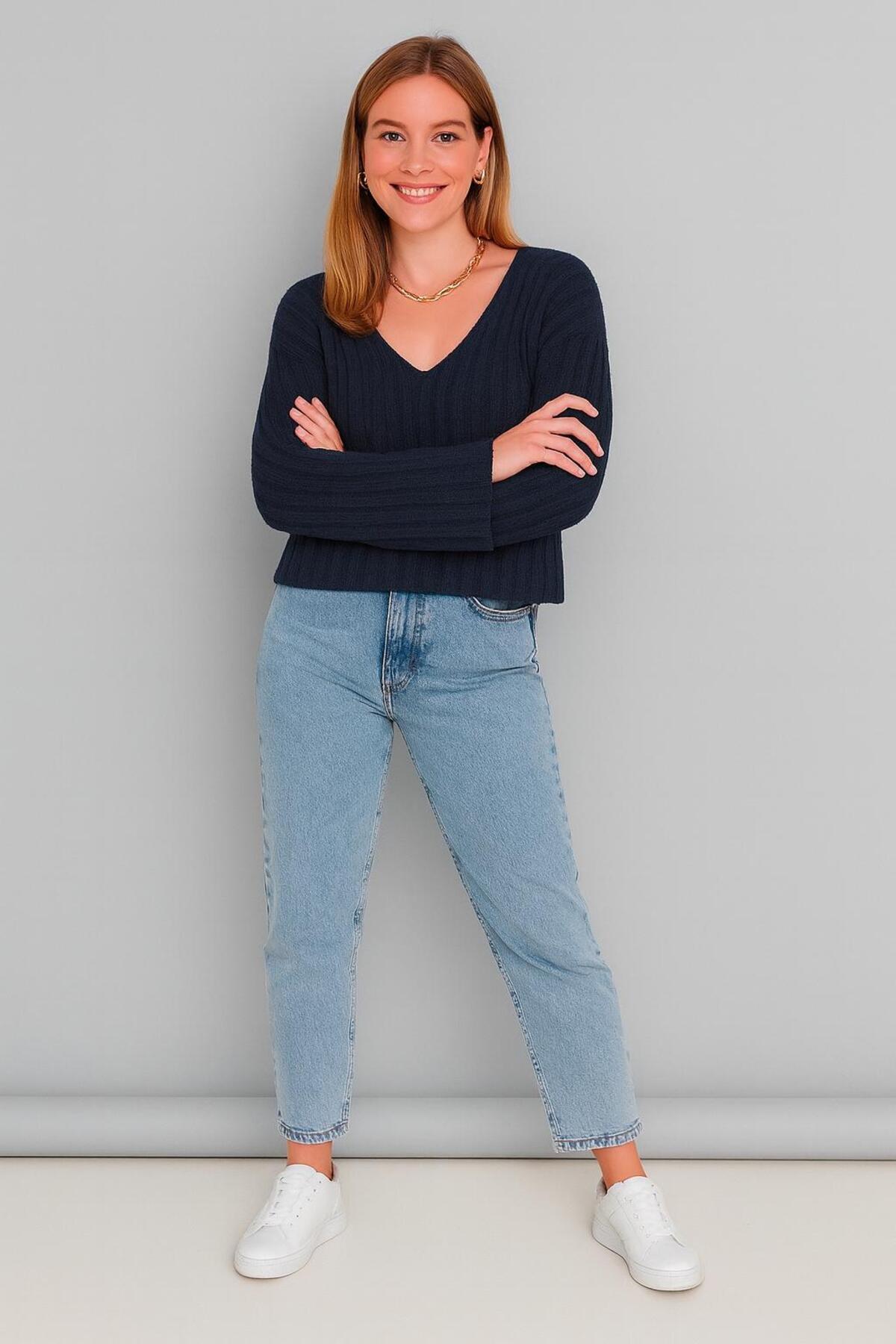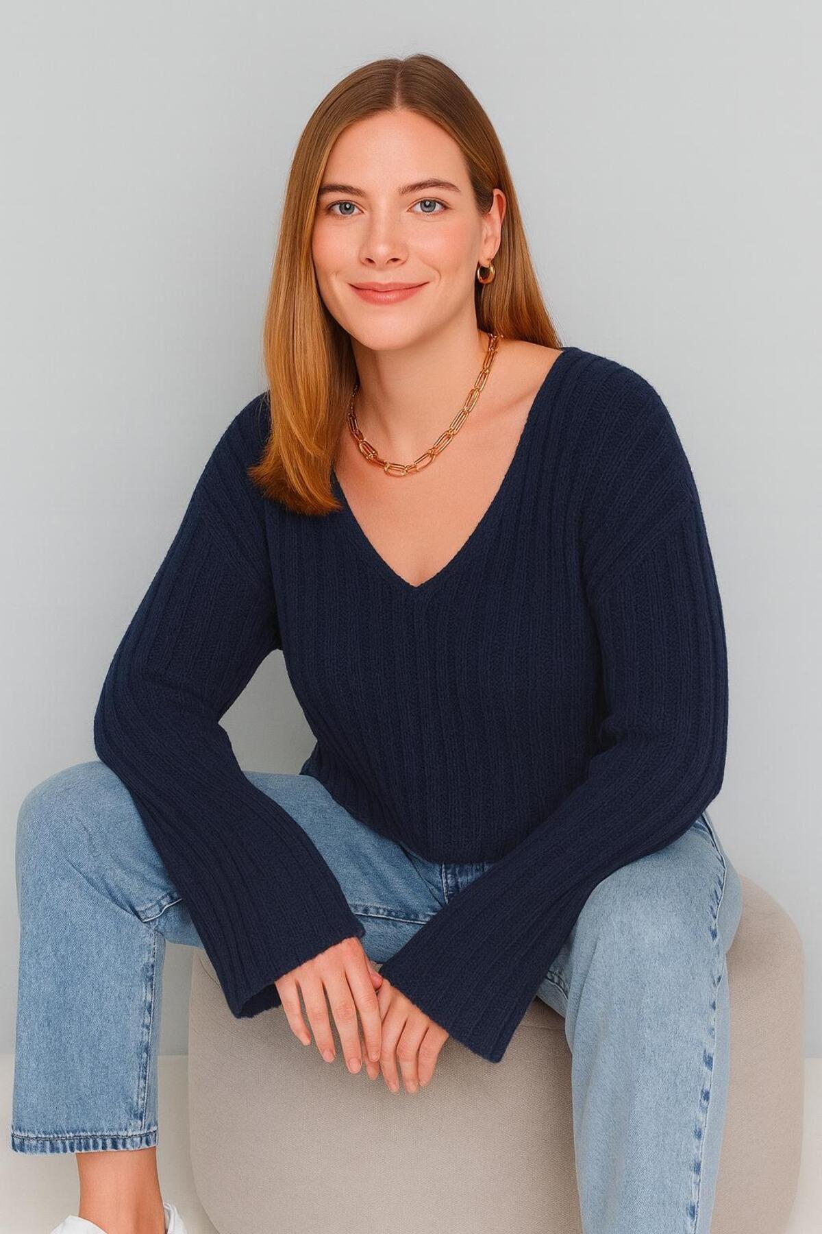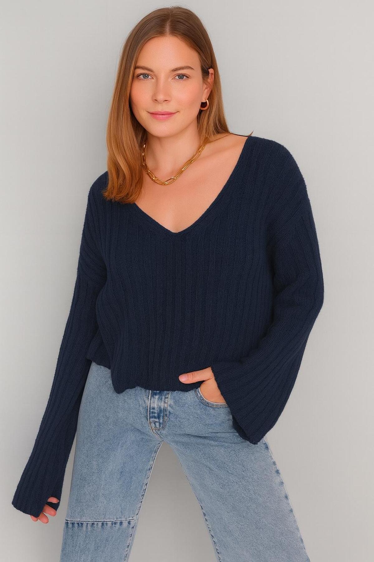 GENİŞ V YAKA TRİKO CROP KAZAK GENİŞ V YAKA TRİKO CROP KAZAK YG601 Standart