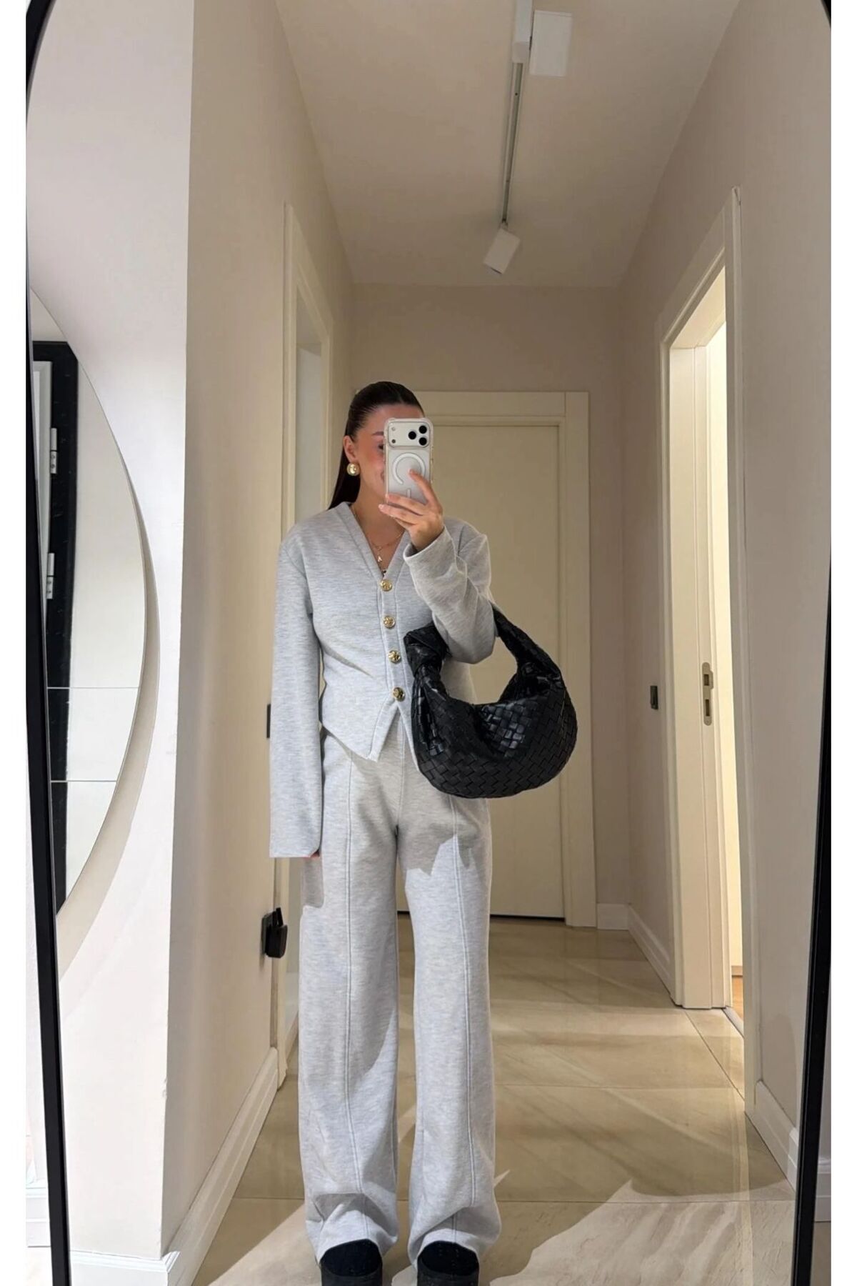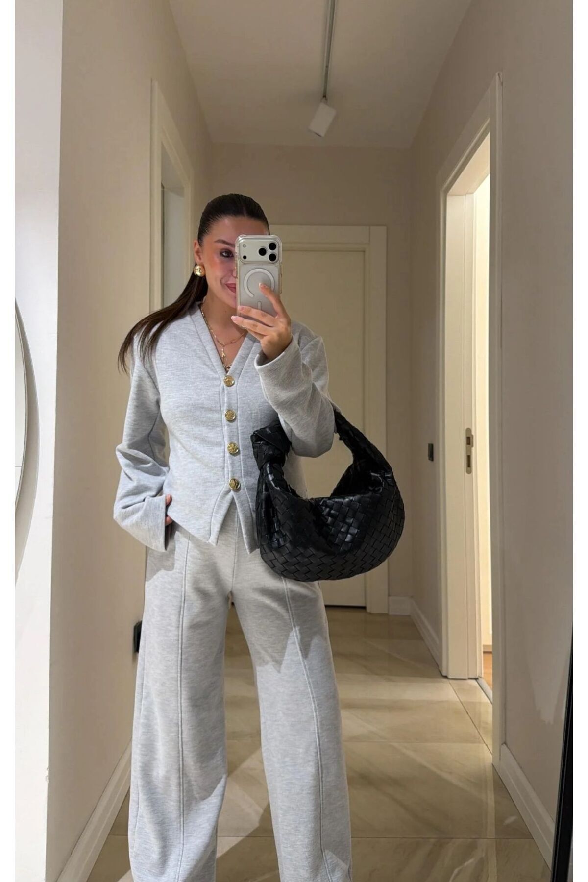 Gold Düğmeli Hırka Ve Triko Pantolon Takım Gold Düğmeli Hırka Ve Triko Pantolon Takım creptakm L