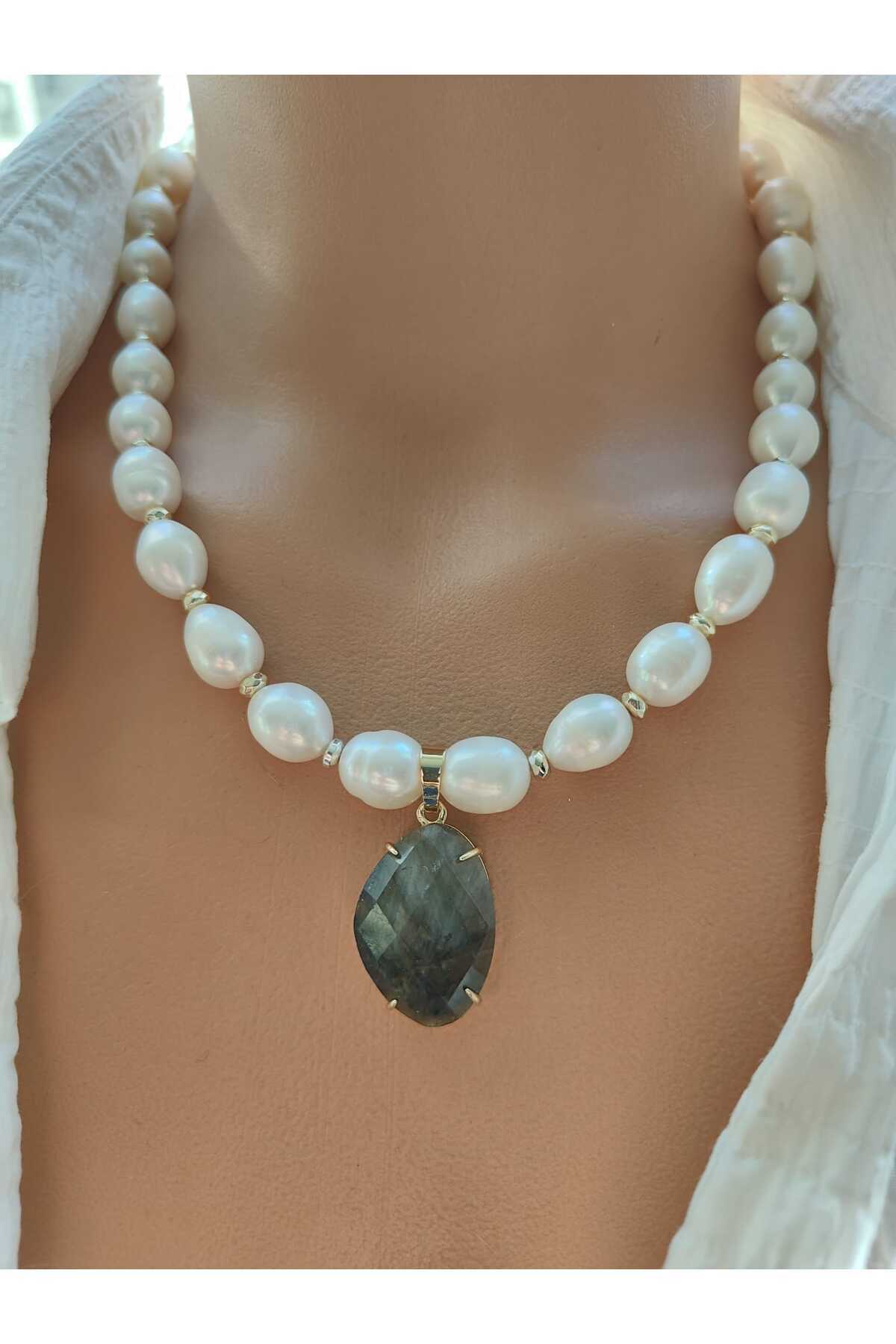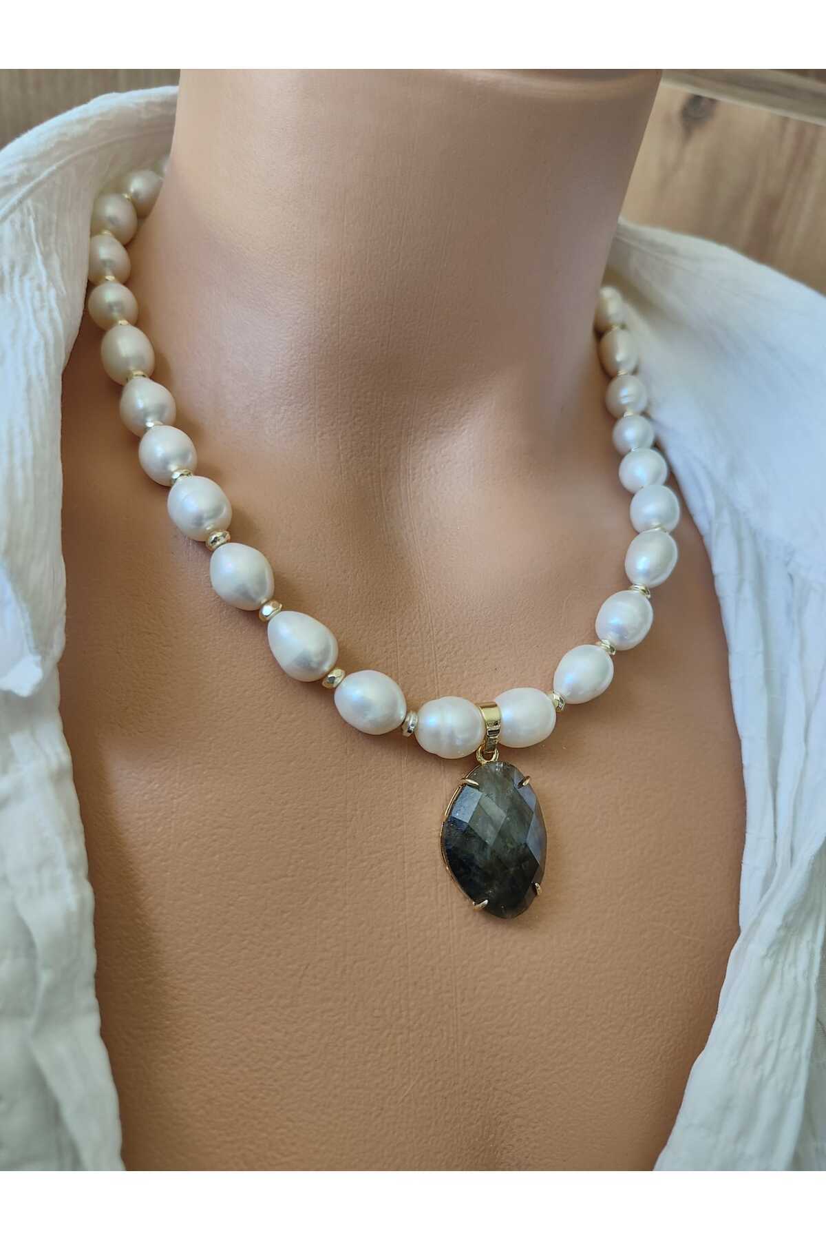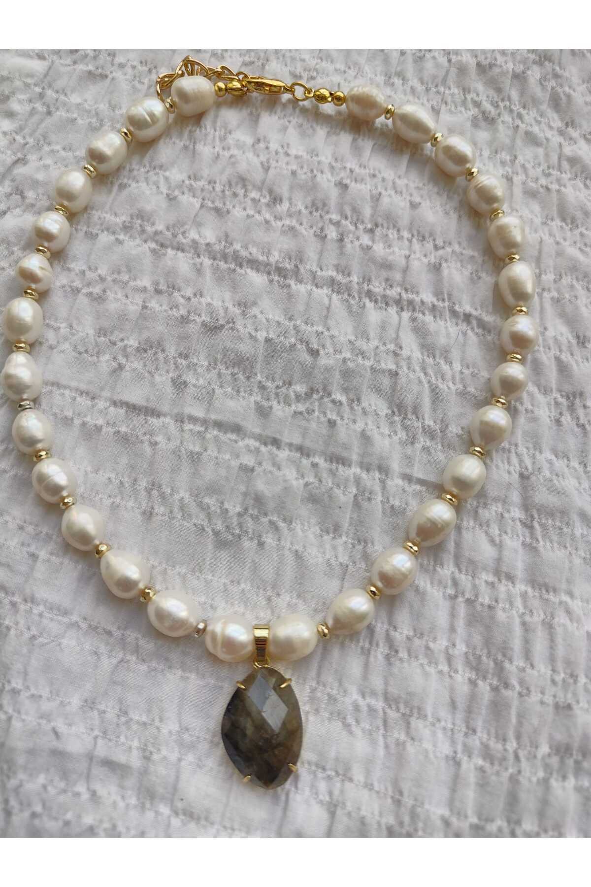 İri Gerçek İnci kolye,Labradorit Doğal taş Kolye , Özel Gün Kolye kadın el yapımı kolye İri Gerçek İnci kolye,Labradorit Doğal taş Kolye , Özel Gün Kolye kadın el yapımı kolye labinelina تک سایز