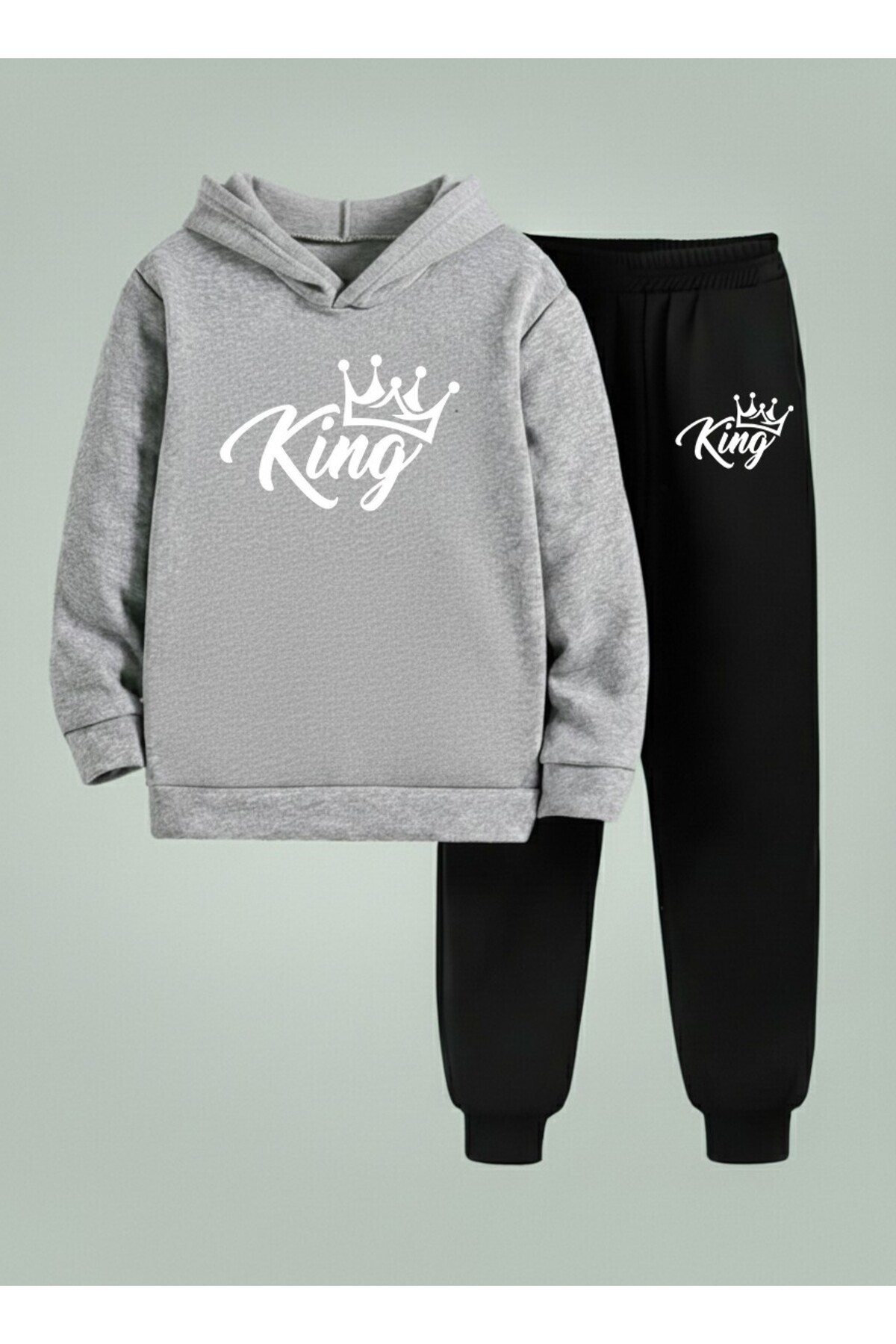 Erkek Çocuk Kapüşonlu Takım KİNG CROWN Baskılı 3 İplik Şardonlu Sweatshirt - Eşofman Takım Erkek Çocuk Kapüşonlu Takım KİNG CROWN Baskılı 3 İplik Şardonlu Sweatshirt - Eşofman Takım kingcrown- 13-14 Yaş