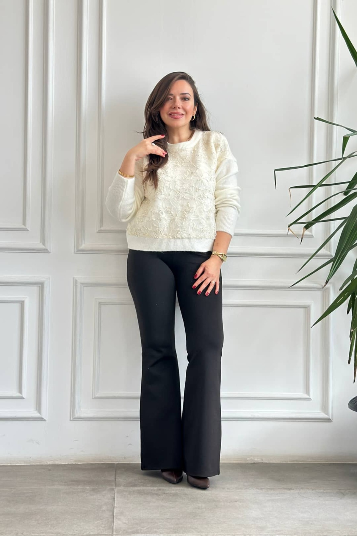 Tül Detaylı Triko Kazak Tül Detaylı Triko Kazak tul-detayli-triko-kazak Standart