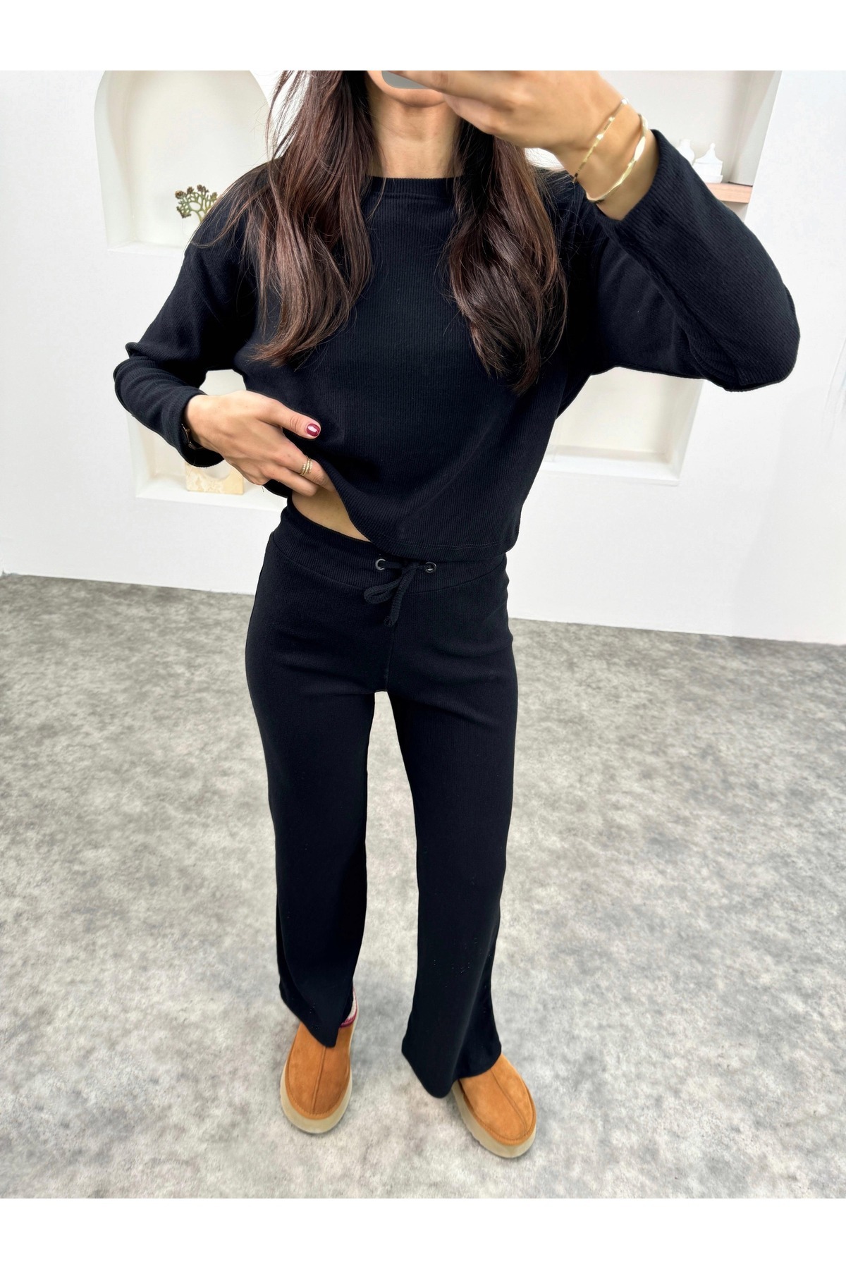 KADIN RAHAT FİTİLLİ UZUN KOLLU YÜKSEK BEL TAKIM KADIN RAHAT FİTİLLİ UZUN KOLLU YÜKSEK BEL TAKIM TYKUFI8 XL