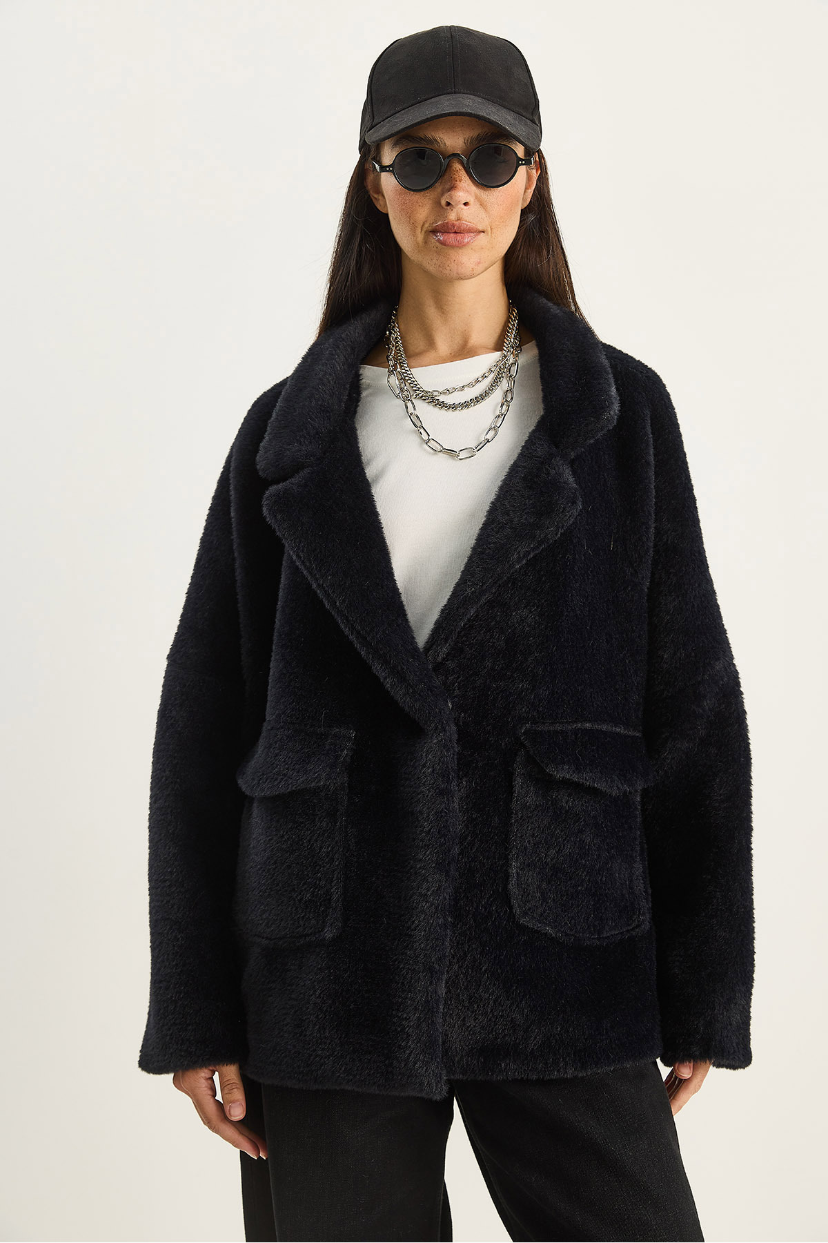 Kadın Çift Cepli Oversize Peluş Mont 1611 60261097 Kadın Çift Cepli Oversize Peluş Mont 1611 60261097 Standart