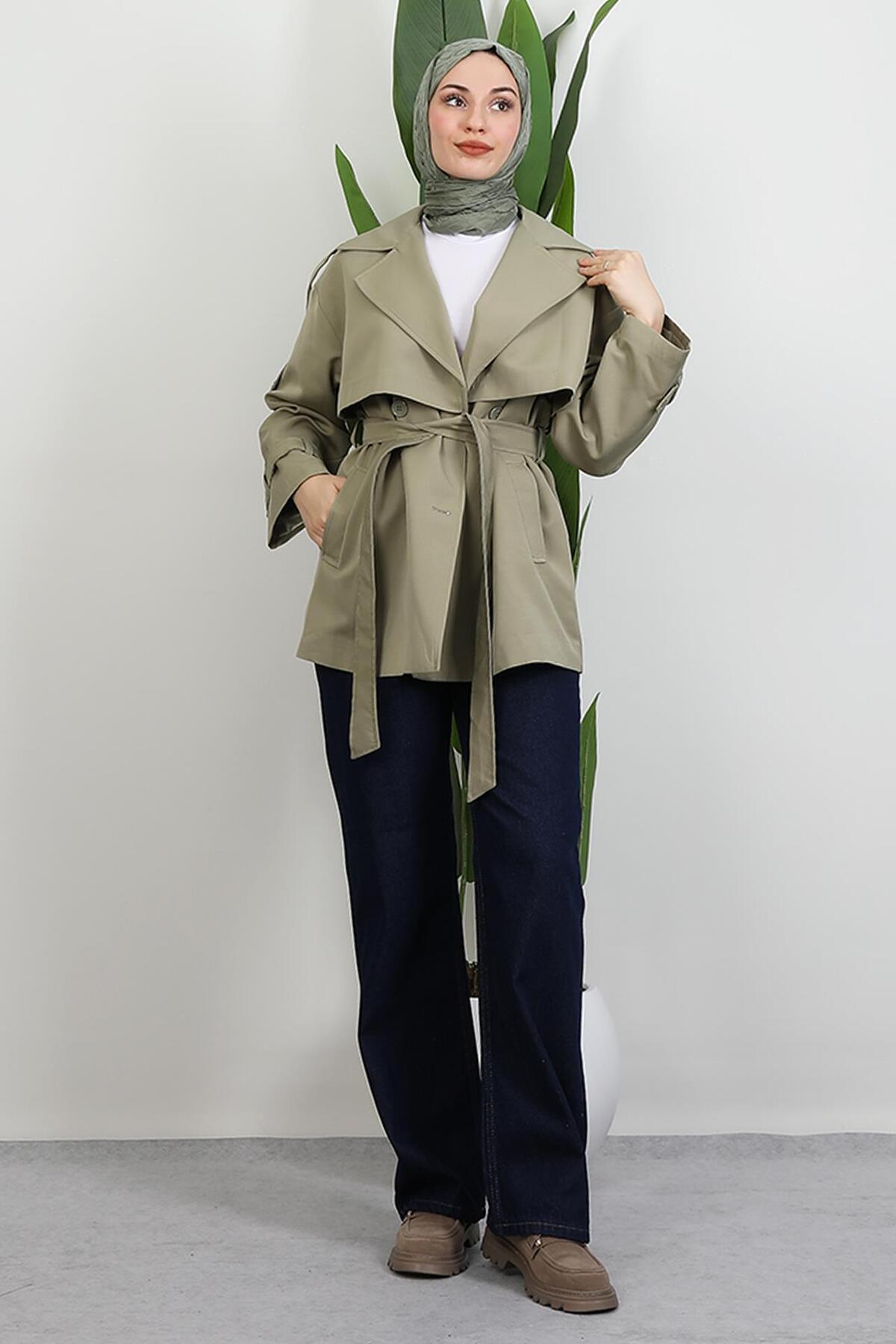 Kemer Detay Kısa Trenç Soft Yeşil Kemer Detay Kısa Trenç Soft Yeşil 1050070 42