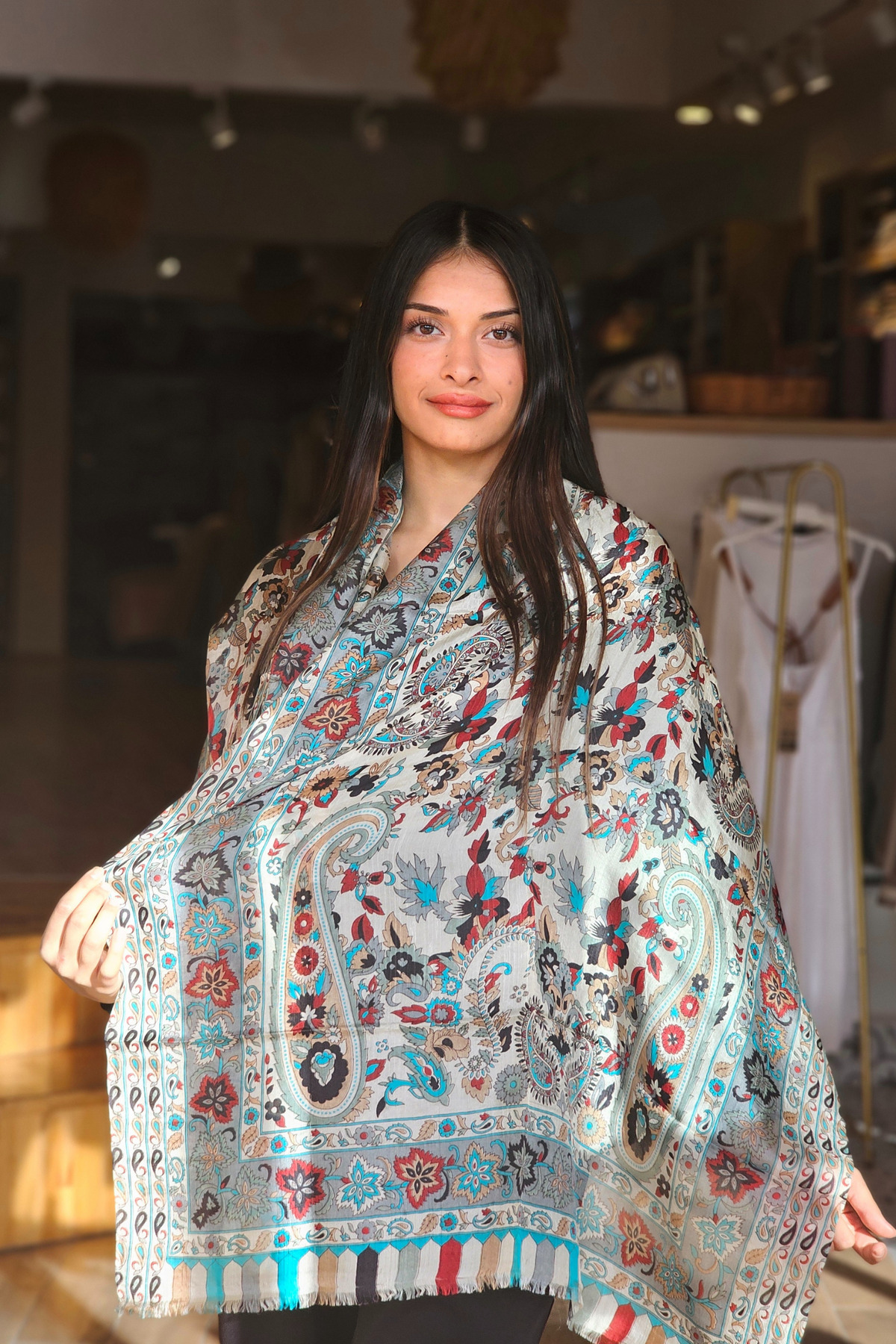 Açık Mavi Turuncu Yüzükten Geçen Şal Açık Mavi Turuncu Yüzükten Geçen Şal ygb2 70 x 200