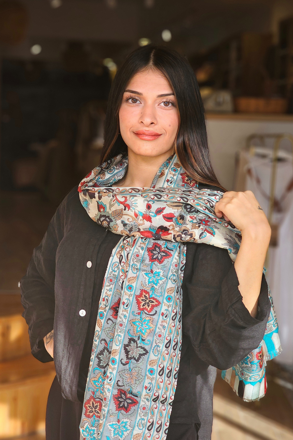 Gri Bordo Desenli Yüzükten Geçen Şal Gri Bordo Desenli Yüzükten Geçen Şal şd13 70 x 200