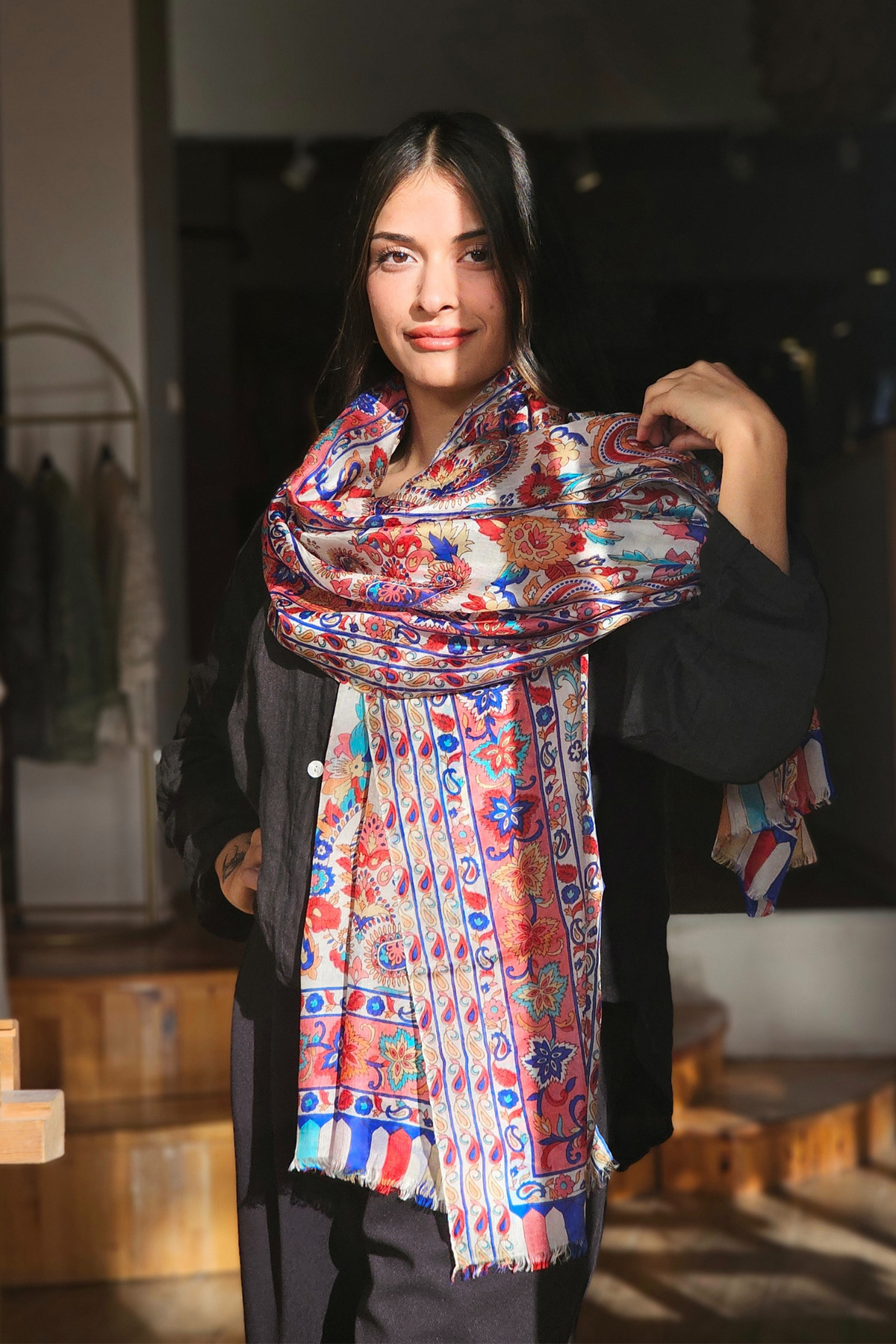 Pembe Mavi Desenli Yüzükten Geçen Şal Pembe Mavi Desenli Yüzükten Geçen Şal şd14 70 x 200