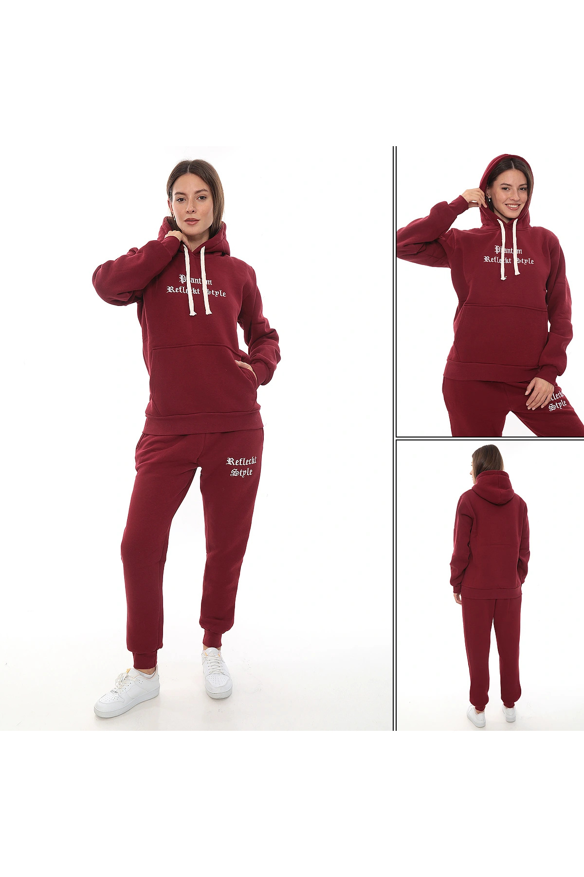 Bordo Şık Polarlı Kadın Eşofman Takımı Paça Lastikli Cepli Kapüşonlu Nakış Detaylı Compact Takım Bordo Şık Polarlı Kadın Eşofman Takımı Paça Lastikli Cepli Kapüşonlu Nakış Detaylı Compact Takım KADIN-EŞOFMAN-TAKIMI 2XL